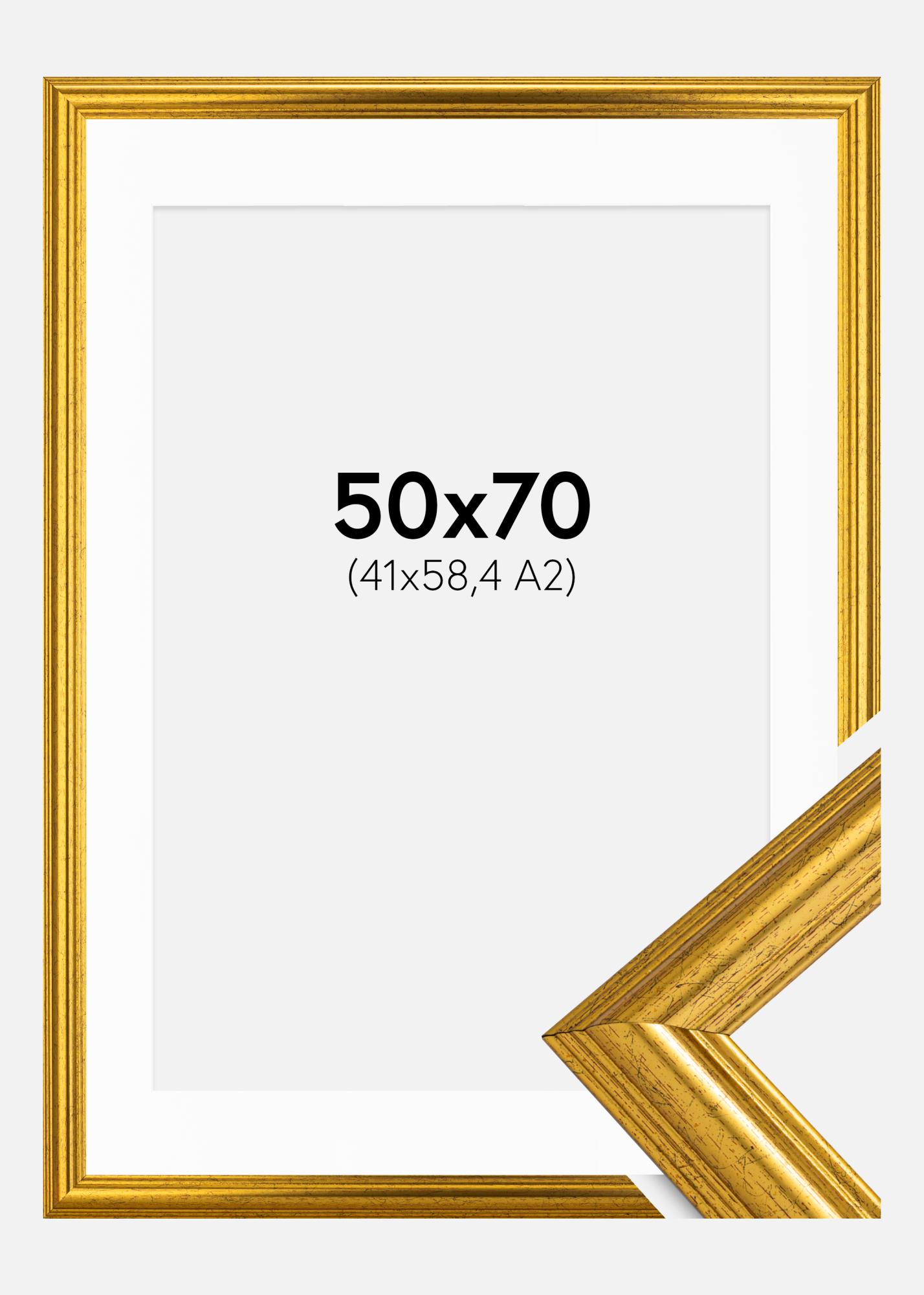 Ramme Västkusten Gull 50x70 cm - Passepartout Hvit 42x59,4 cm (A2)