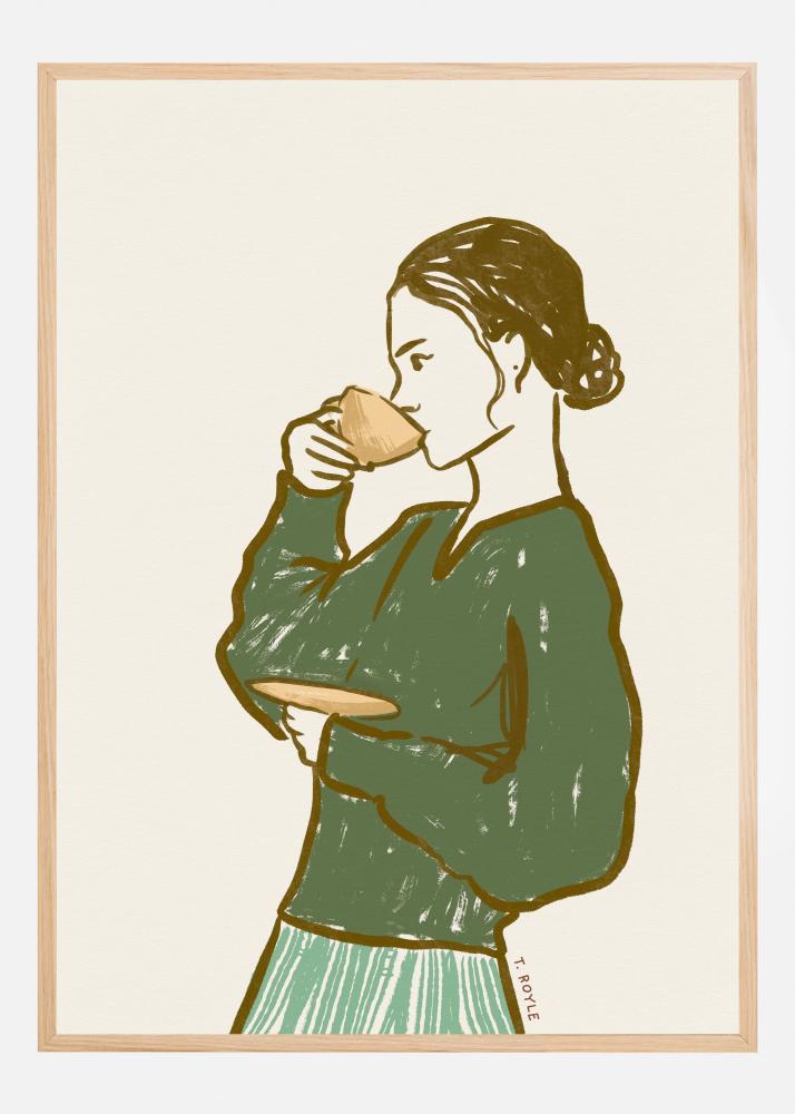 https://www.bgafotobutikk.no/Woman-Drinking-Tea-in-Green-Plakat-30x40-cm