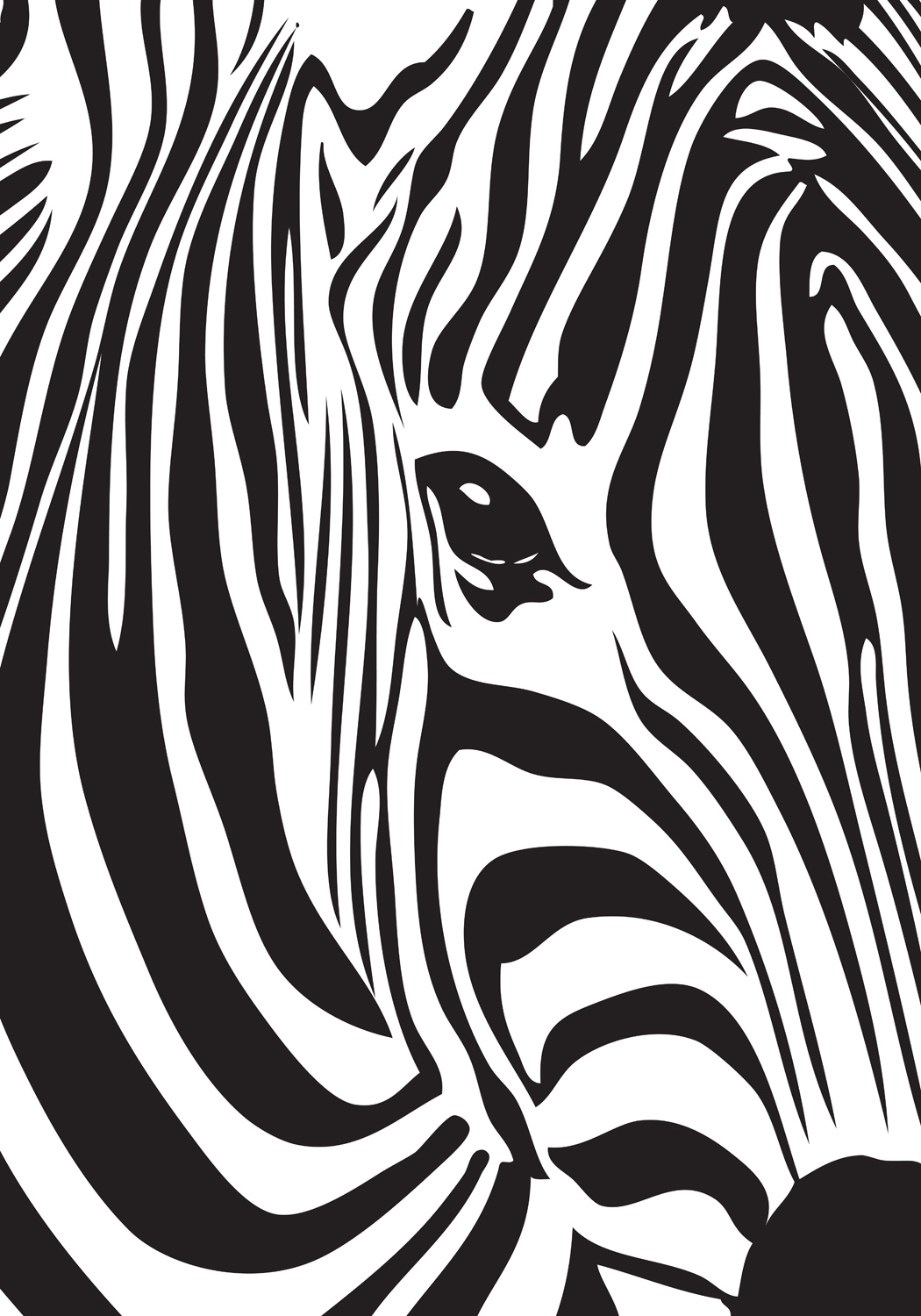 Grafisk posters med et nærbilde av en sebra. Posters passer virkelig godt til å henges opp som en del av en bildevegg med ville dyr, både i form av illustrasjoner og fotografier, som blir et blikkfang i rommet. Det stilrene grafisk svart-hvite motivet gjør at plakaten gjør seg like godt i hjemmet som i offentlig miljø. Kombiner prints med en svart bilde ramme med smal profil for å fremheve sebramønsteret på beste måte.
