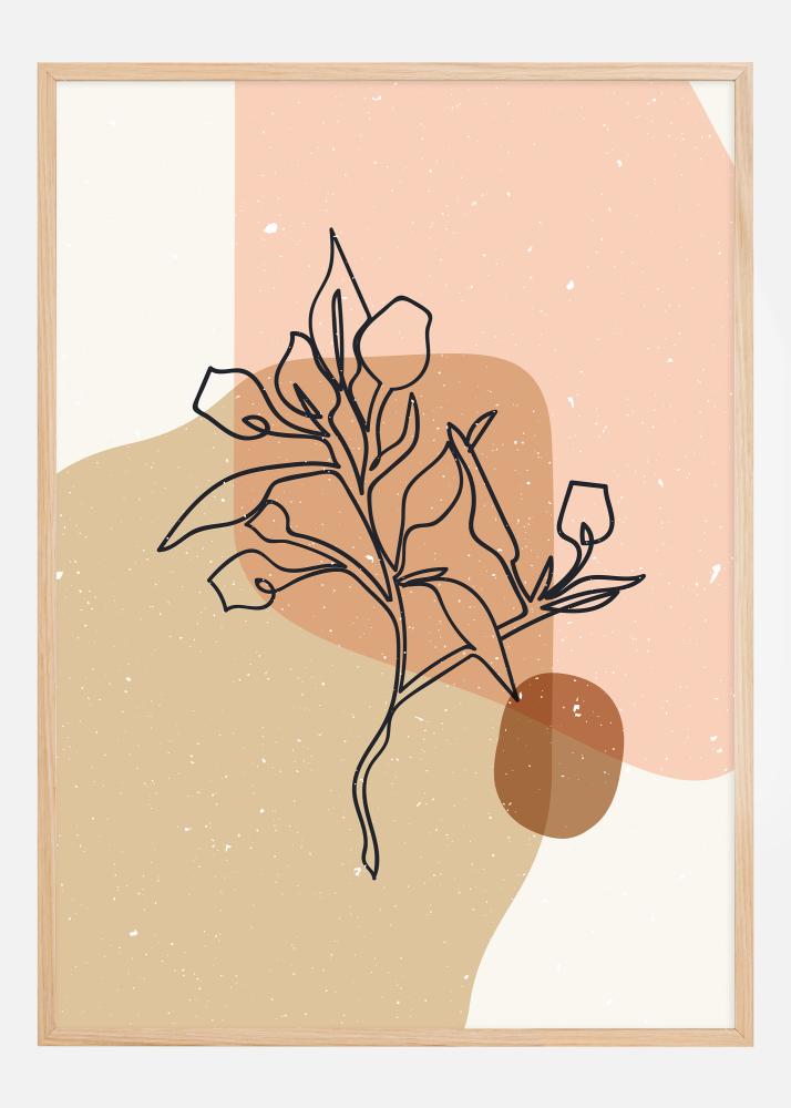 Denne stilige og minimalistiske posteren av en abstrakt plantegren innfører en beroligende fargepalett som umiddelbart gir et sofistikert og avslappet inntrykk. Kunstverket kombinerer organiske former og linjer i en serie overlappende former, som skaper en følelse av dybde og kompleksitet, til tross for dens tilsynelatende enkle design.