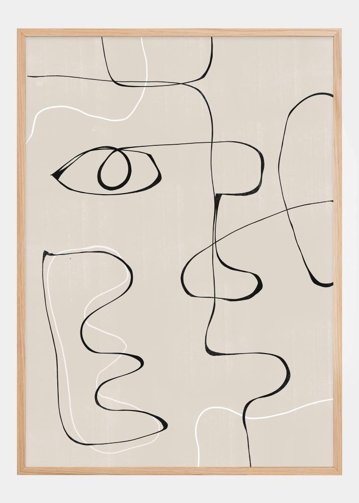 Printet, med sine enkle svarte linjer mot en kremhvit bakgrunn, er en utmerket representasjon av moderne kunst som fanger betrakterens fantasi. Denne plakaten passer godt i et hjem eller kontor der stilren design og tankevekkende kunstverk er verdsatt. Dens rene estetikk gjør den til et allsidig verk som kompletterer en rekke forskjellige interiørstiler.