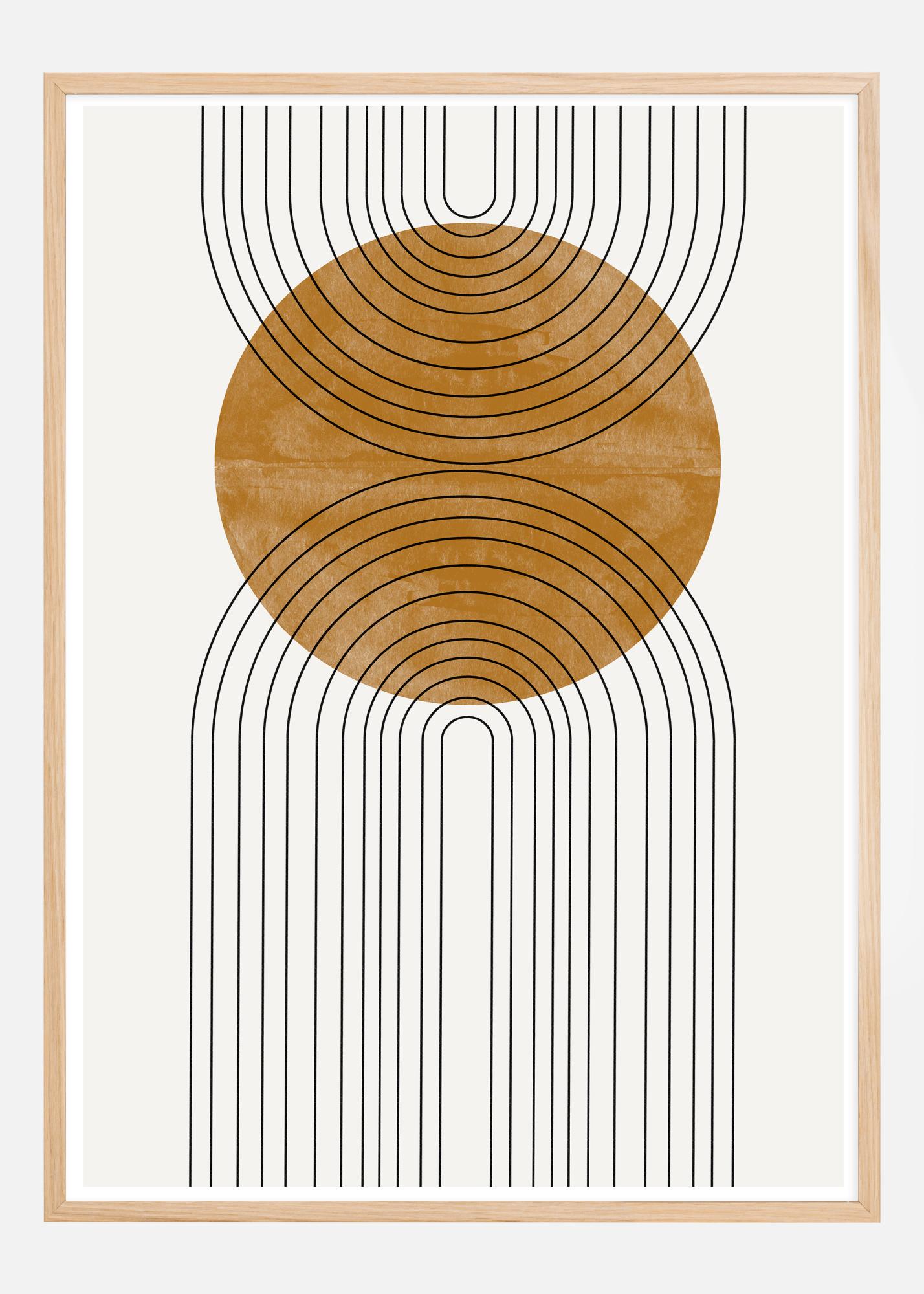 Denne plakaten fanger en enestående blanding av geometri og natur med sine sveipende linjer som former to overlappende halvsirkler. Den uvanlige designen skaper en følelse av bevegelse og balanse, mens de varme brunaktige tonene gir en følelse av jordnær stabilitet. Dens rene og flytende linjer i svart kontrasterer vakkert mot den lyse bakgrunnen og den mettede brunaktige fargen, og skaper et bilde som er både moderne og tidløst.