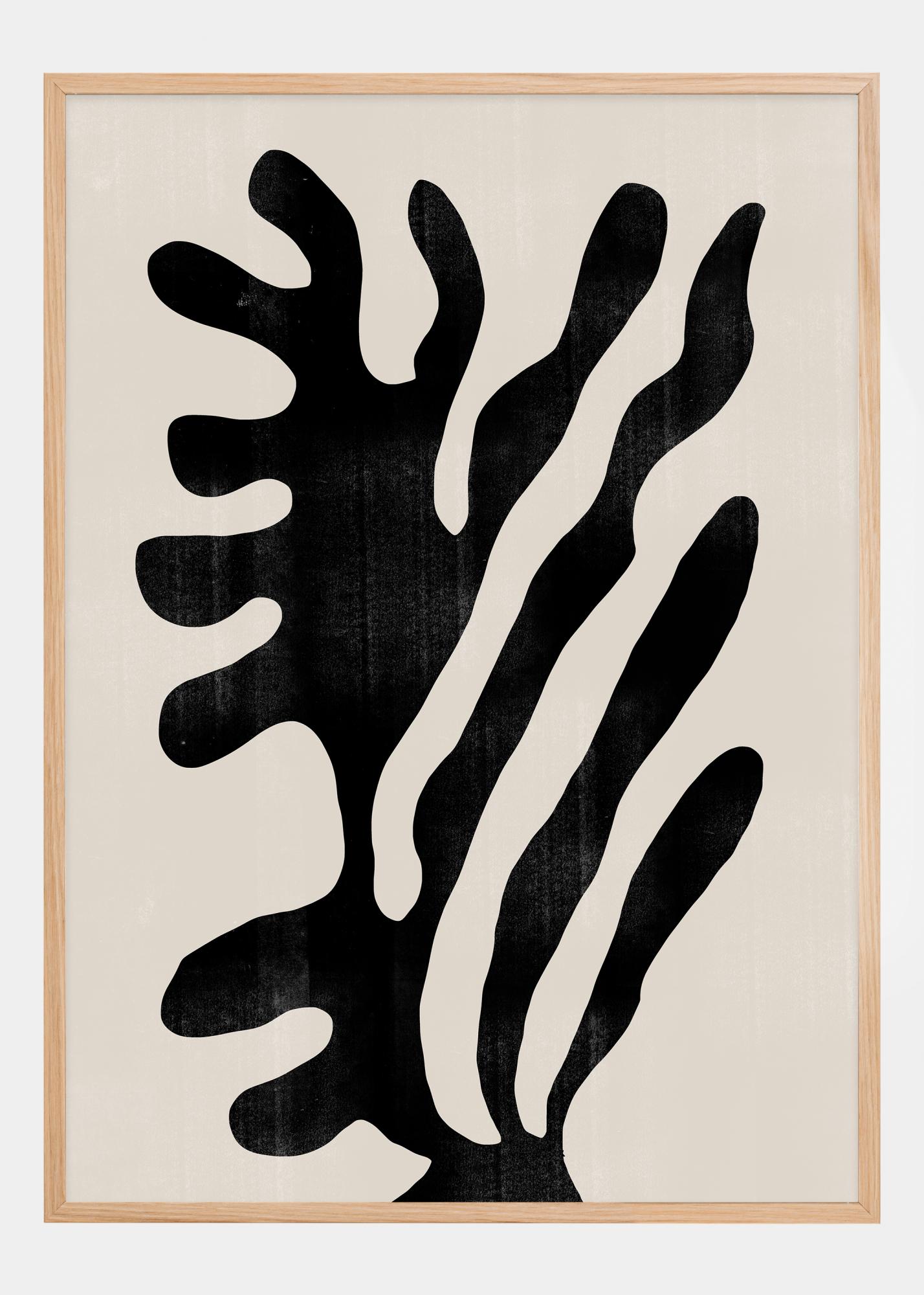 Med et kraftfullt og abstrakt uttrykk, inviterer denne posteren til en tolkning av naturens livskraft. De dristige svarte formene, som minner om et plantes blad eller en eksotisk blomst, står i kontrast til den kremhvite bakgrunnen og skaper en dynamisk og dramatisk effekt. Dette kunstverket fanger den organiske skjønnheten i naturen gjennom et minimalistisk men dristig språk.