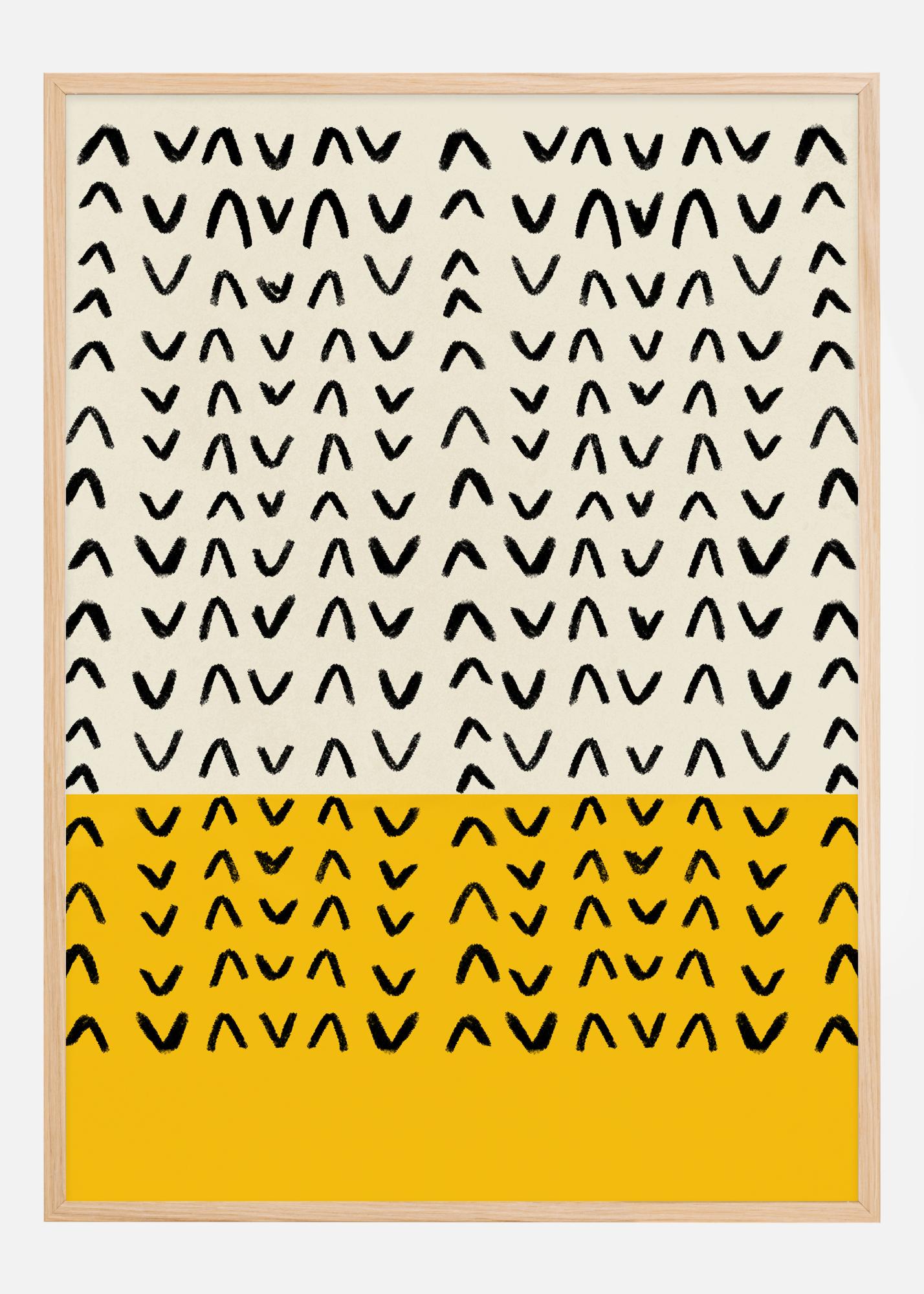 Dette grafiske trykket utmerker seg med sine klare farger: svart, hvitt og gult. De svarte formene er spredt på en måte som gir en følelse av bevegelse og livlighet, mens den gule fargen gir et snev av varme og energi. Denne kombinasjonen av farger gjør at plakaten kan komplementere en rekke ulike interiørstiler og fargeskjemaer, samtidig som den står sterkt på egen hånd. Plassert i hjemmet vil denne plakaten være et samtaleemne og en kilde til daglig inspirasjon.
