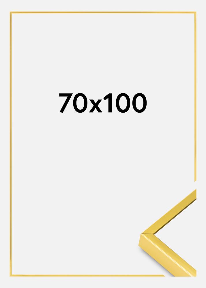 Skap en luksuriøs følelse i hjemmet ditt med vår elegante gullramme i størrelsen 70x100 cm. Denne gullfargede blanke fotoramme gir en sofistikert touch til dine favorittbilder eller kunstverk. Laget av høykvalitets aluminium, kombinerer den holdbarhet med en stilren design.