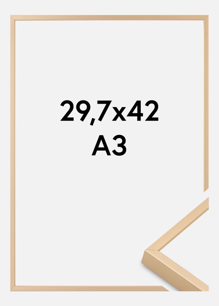 Forvandle dine favorittbilder og kunstverk til elegante blikkfang med denne stilrene fotorammen i messing. Med en størrelse på 29,7x42 cm (A3) er den perfekt for å fremheve dine mest elskede motiver. Denne bilderammen er laget av høykvalitets aluminium og har en glatt, matt overflate i en sofistikert messingfarget tone som gir et moderne og minimalistisk inntrykk.