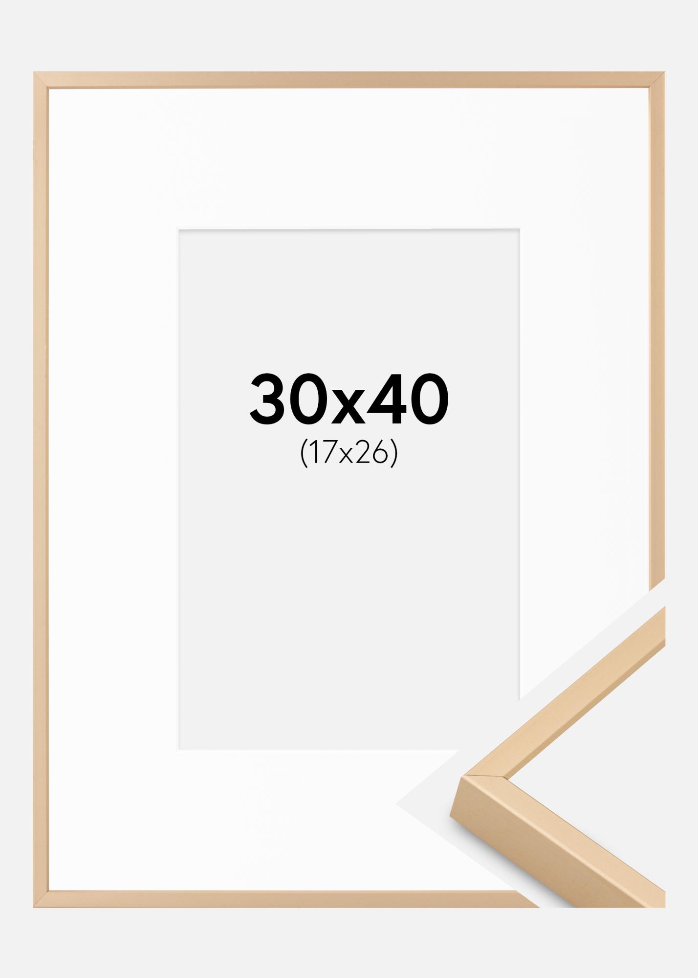 Aluminiumsramme Messing 30x40 cm - Passepartout Hvit 18x27 cm