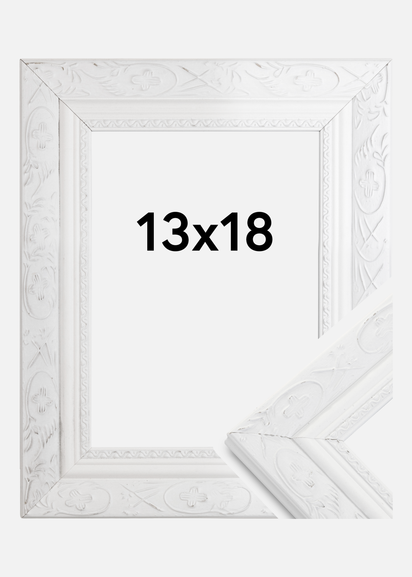 Barock Hvit er en fantastisk treramme i retrostil med vakre utsmykninger. Perfekt om du ser etter en vakker treramme i gammeldags stil. Et bra valg til forstørrelser du liker ekstra godt.