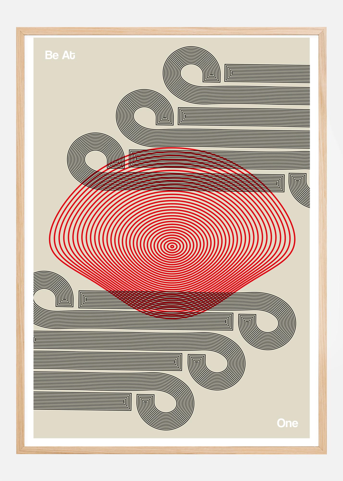 Denne kunstneriske posteren med tittelen "Be At One" er en hyllest til abstrakt kunst og moderne design. Med sin hypnotiserende røde spiral i sentrum og de svart-hvite linjene som skaper en illusjon av bevegelse, blir denne printen en umiddelbar blikkfang i hvilket som helst rom. Den er skapt for å vekke betrakterens nysgjerrighet og inspirere til ettertanke, noe som gjør den til en perfekt samtalestarter for en stue eller et kontor.