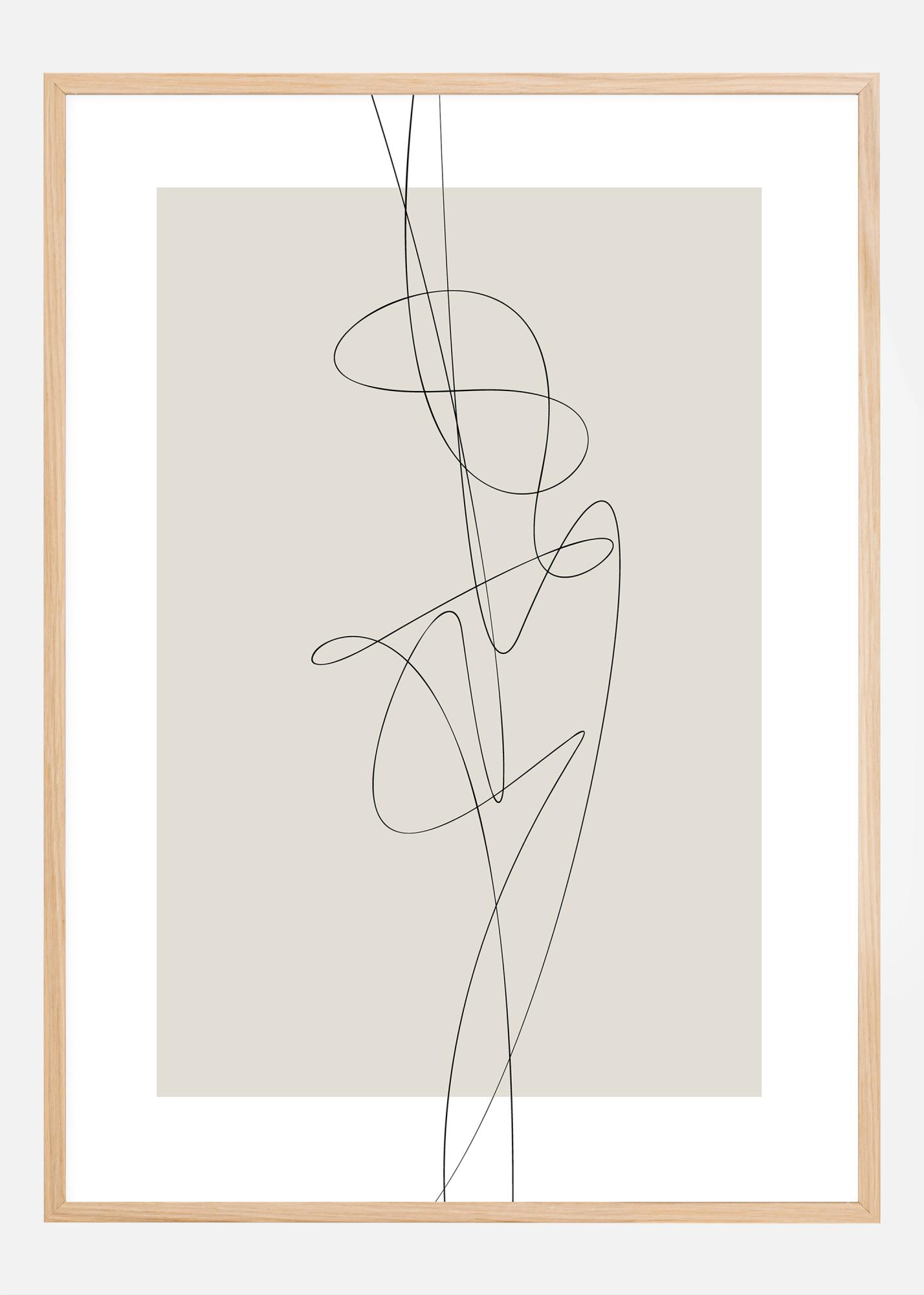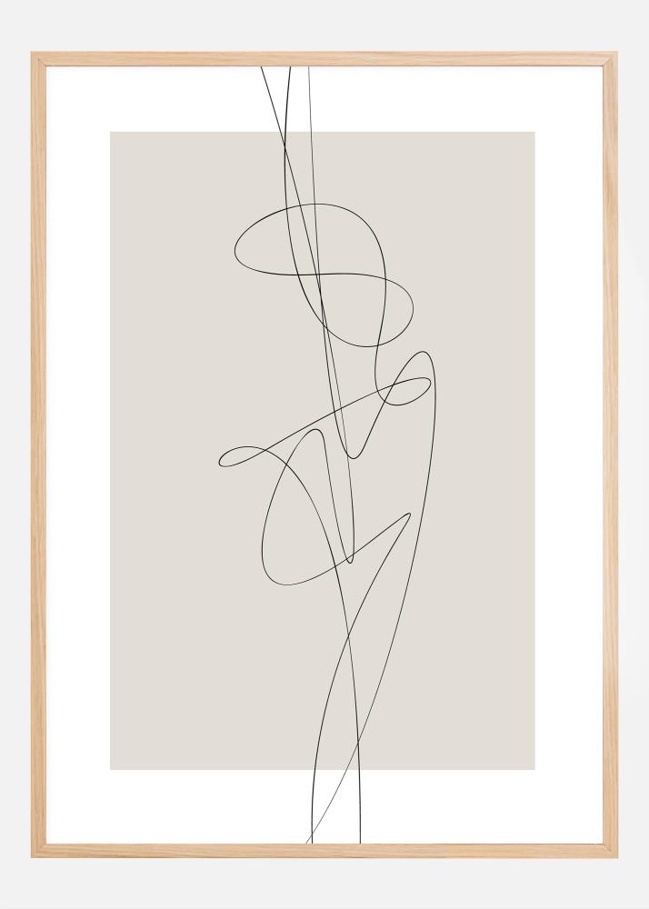 Denne minimalistiske og abstrakte posteren er en del av vår samling og appellerer til den som verdsetter enkelheten i moderne kunst. Den elegante svarte linjen sveiper over den beige bakgrunnen og skaper en fri form som kan tolkes på mange forskjellige måter. Denne plakaten representerer ikke bare kreativ frihet men også det subtile i mindre er mer-filosofien, noe som gjør den til en perfekt interiørdetalj for de mest moderne rom.