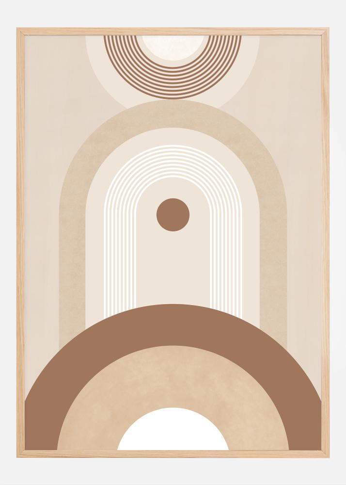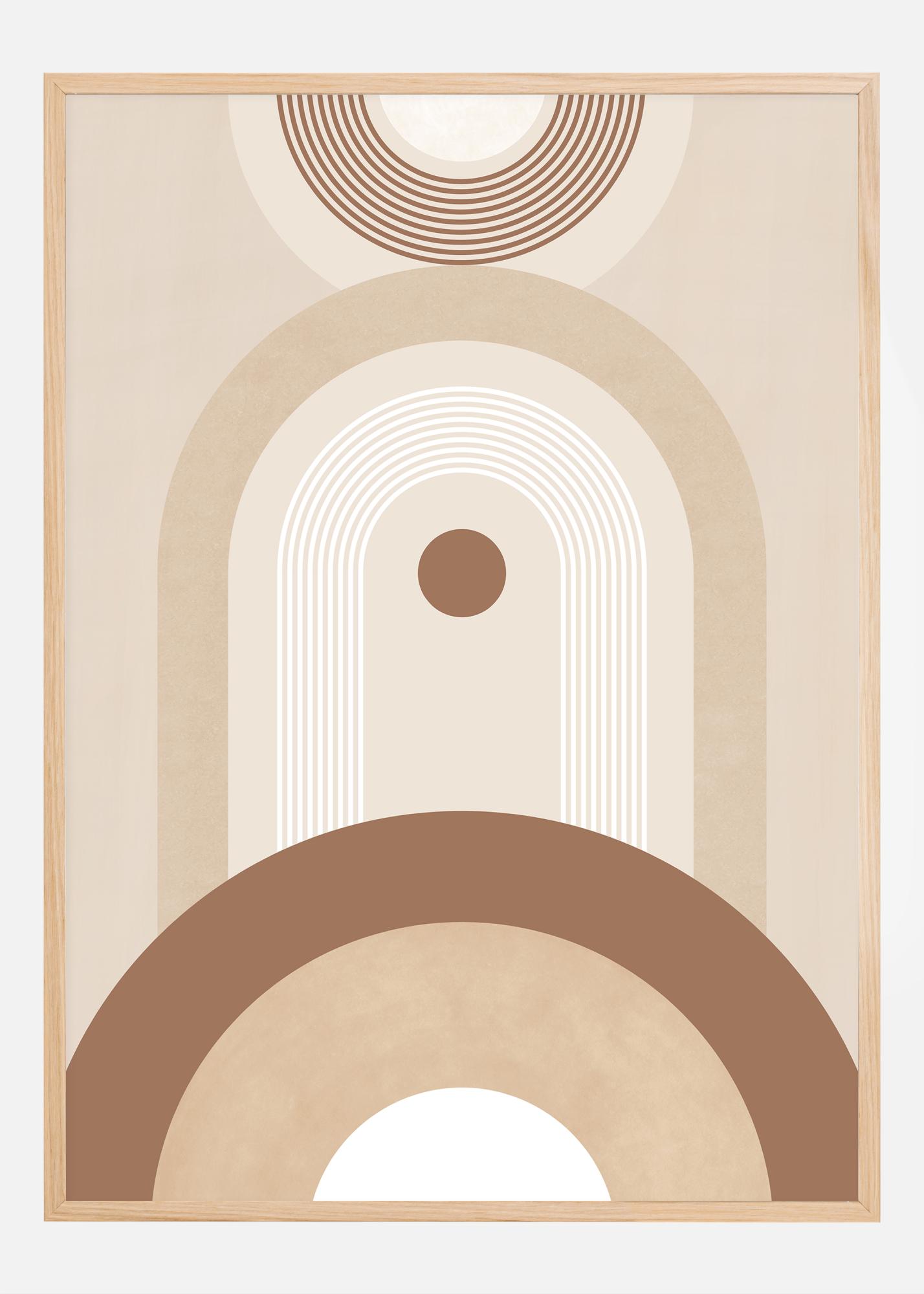 Utforsk skjønnheten i geometri og minimalisme med denne distinkte posteren, en del av vår kuraterte kunstsamling. Denne printen, inspirert av mid-century modern estetikk, kombinerer sirkulære former og linjer for å skape en følelse av balanse og harmoni. De myke beige og brune tonene i denne plakaten formidler en følelse av ro og er perfekte for å skape en avslappet og elegant atmosfære i alle rom.