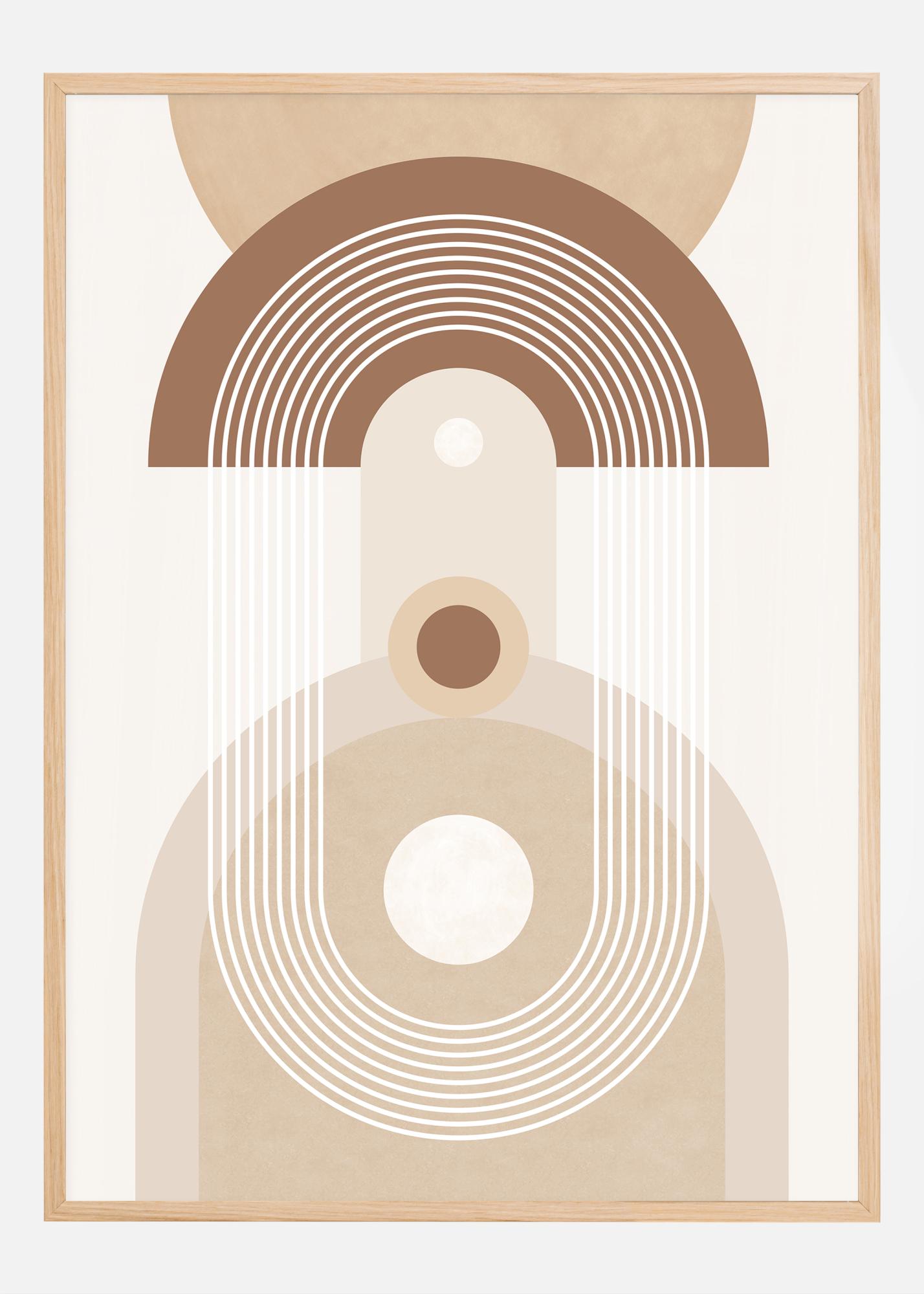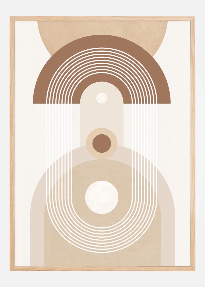 Denne sofistikerte og stilrene posteren fortsetter vår kuraterte samling av mid-century modern kunst. Den abstrakte komposisjonen, som leker med både form og negativt rom, bruker et begrenset fargespekter av beige og brune toner for å skape en følelse av dybde og bevegelse. Med dens geometriske figurer og overlappende linjer tilbyr denne plakaten en subtil kompleksitet som kan verdsettes fra alle vinkler.