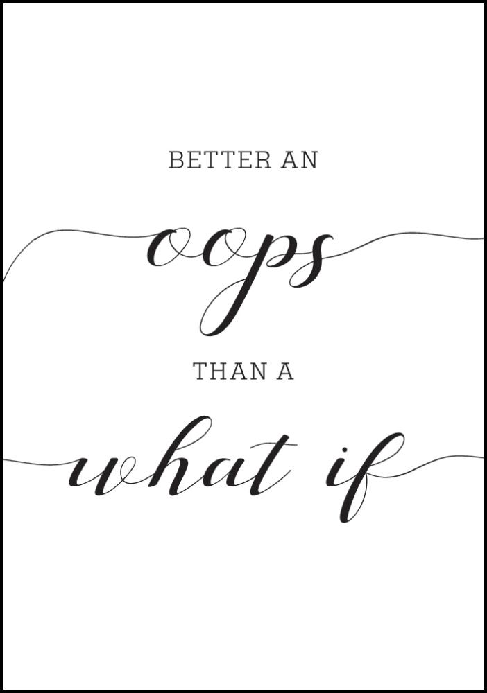 https://www.bgafotobutikk.no/better-an-oops-than-a-what-if51024411Better an oops than a what ifhttps://www.bgafotobutikk.no/resource/u2vG/0dl/TCgOWYTiUf2/Affischer-Posters/2018-08/med-ram/quotes_mar_2018-2-08.jpghttps://www.bgafotobutikk.no/resource/u4eq/4L6/H7CD8pfIZm7/Prints/Category/quotes_mar_2018-2-08.jpg58.10NOKDiscontinued/Plakater/Plakater/NyheterEn pen plakat til å pryde hjemmets vegger med, er like egnet til å henges alene, som sammen med andre trykk på en bildevegg. Komplettere plakaten med en stilig ramme som passer til innredningen i rommet og fremhever motivet for å skape en god følelse av miljøet.Bildverkstad13x18 cm13x18 cm2018-08-14T21:22:42+02:00