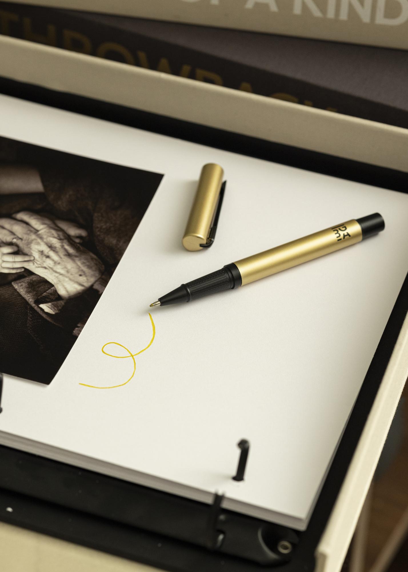 Albumpenn med fargen gull metallic som fungerer utmerket til bruk på for eksempel blanke overflater slik som fotografier. Pennen har 1 mm bred spiss.