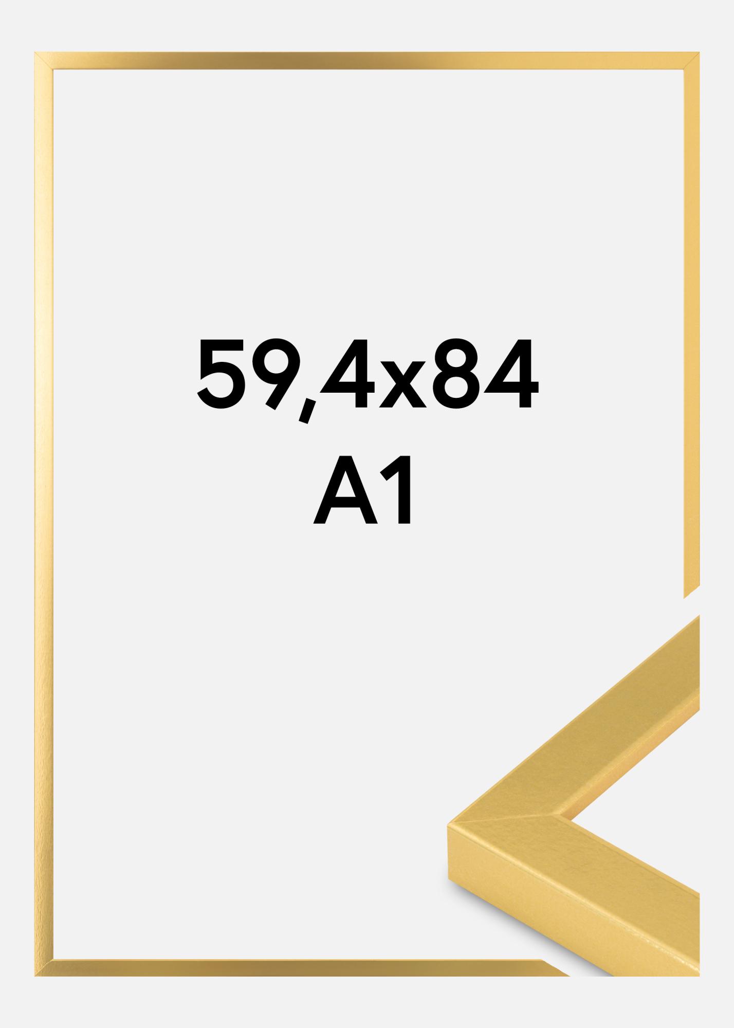 Rammen er tilpasset for motiver i størrelsen 59,4x84,1 cm (A1), noe som gjør den perfekt for større kunstverk eller fotografier. Med en rammelist som er 18 mm bred og en dybde på 18 mm, tilbyr denne bilderammen en stabil og robust innramming. Den er utstyrt med metallhengere på baksiden, noe som gjør det enkelt å henge opp rammen både horisontalt og vertikalt, avhengig av hva som passer ditt motiv best.
