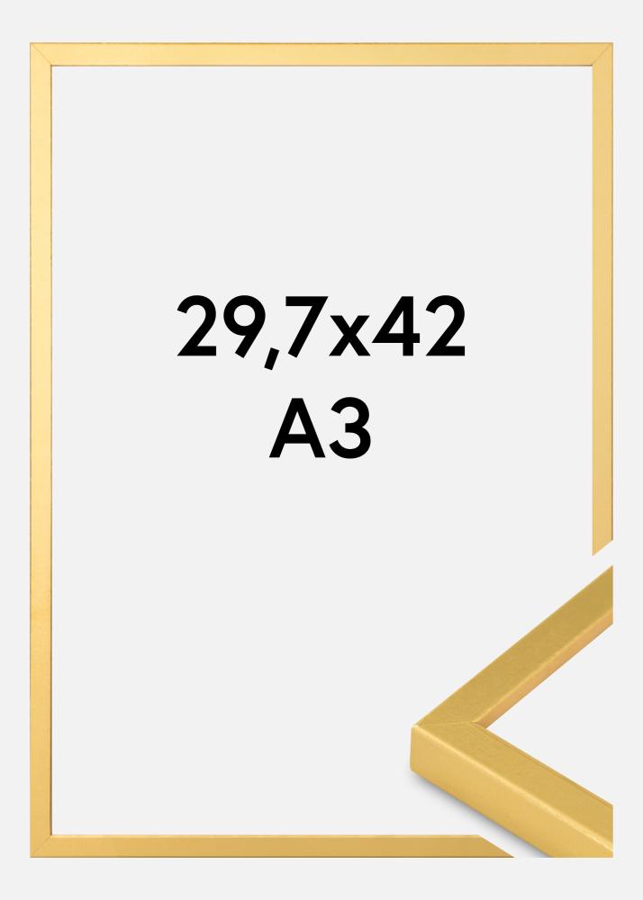 Denne fotorammen er en perfekt kombinasjon av eleganse og modernitet, noe som gjør den til et utmerket valg for å fremheve dine favorittmotiver. Med en størrelse på 29,7x42 cm (A3) passer den perfekt for å vise frem større bilder eller kunstverk. Den gullfargede overflaten har en subtil glans og en lett strukturert finish som gir et eksklusivt og sofistikert uttrykk.