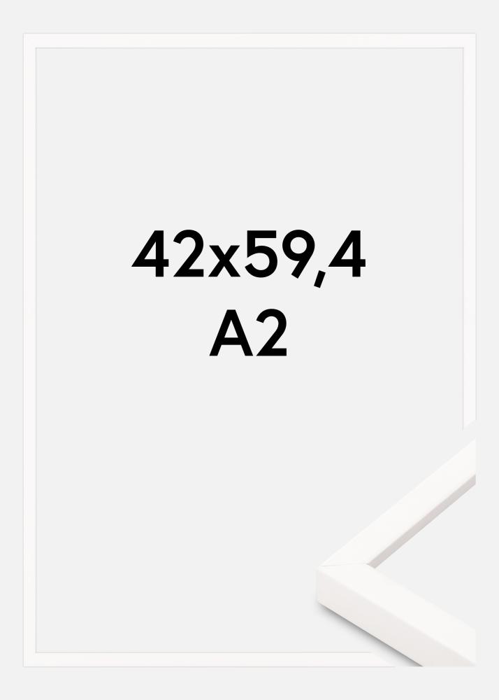 Denne stilrene fotorammen i hvit farge er perfekt for å fremheve dine favorittmotiver. Med en størrelse på 42x59,4 cm passer den utmerket for A2-format, hvilket gjør den ideell for større bilder eller plakater. Den elegante og minimalistiske designen med en tynn, glatt profil gir et stilrent inntrykk som smelter inn i de fleste interiører.