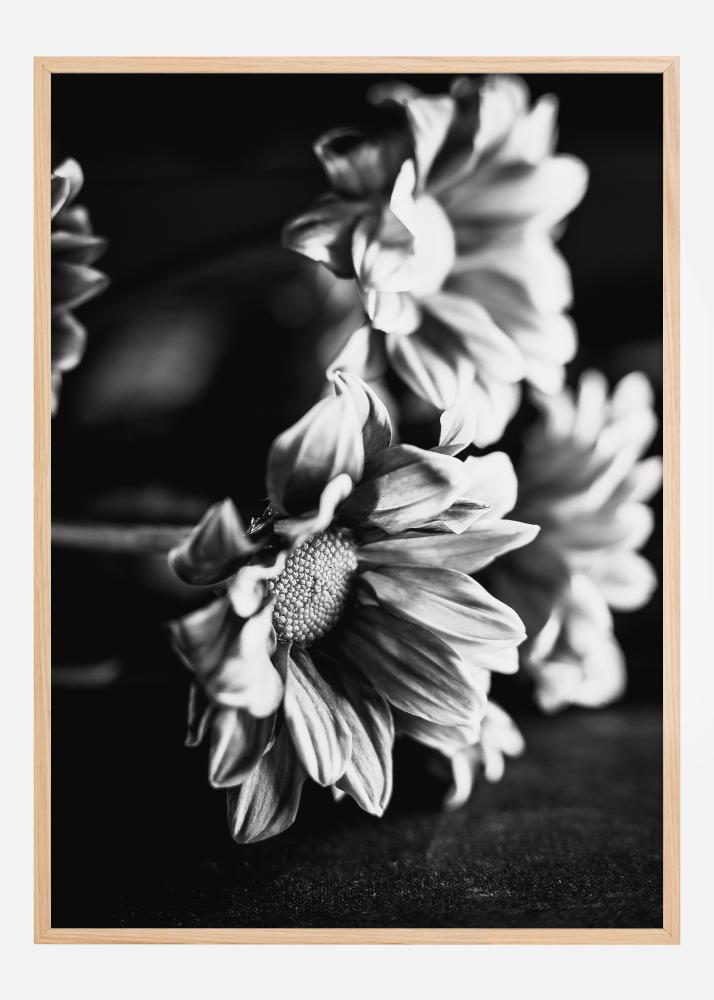 Denne posteren avbilder en blomsterarrangement i svart-hvitt, der skygger og lys samvirker for å fremheve de delikate konturene og teksturen hos hvert blomsterblad. Bildens fokus på kontrasten mellom det mørke og det lyse fanger blomstenes skjønnhet på en måte som gir en ny forståelse for deres form og struktur. Denne plakaten er en sofistikert og kunstnerisk tolkning av naturens underverk, perfekt for å skape en følelse av ro og skjønnhet i ethvert rom.