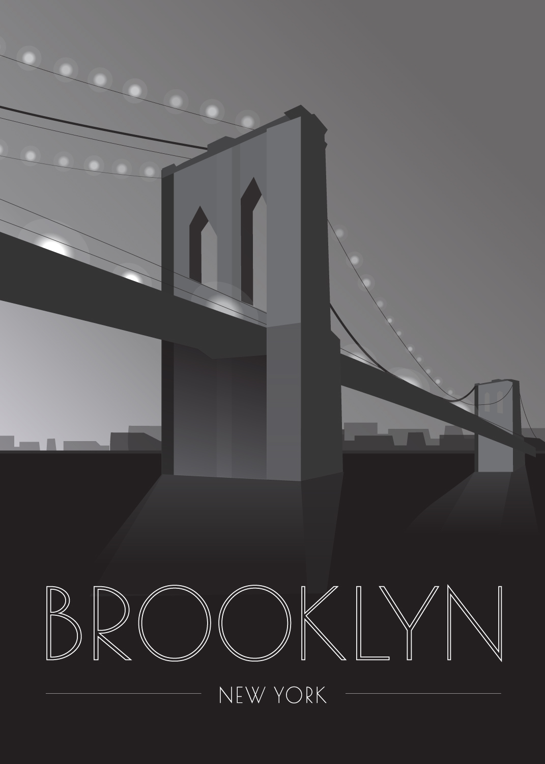 Reis hele veien til Brooklyn hver gang du titter på denne herlige kunstbiten! Brooklyn Bridge er en plakat av høy kvalitet som tilfører en trivelig retrofølelse i ditt hjem. Det nøytrale designet går i hvitt, grått og svart med teksten "Brooklyn New York" i hvitt. Gråskalaen gjør den perfekt å kombinere med dine favorittfarger! Sett den opp som den er, eller kompletter med en stilig ramme og passepartout. Finnes i 6 ulike format og prisklasser.