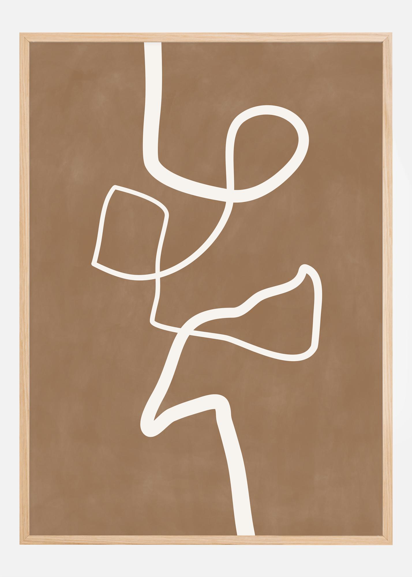 Med en subtil og samtidsriktig touch formidler denne posteren en enkel eleganse gjennom sin eneste, kontinuerlige hvite linje som tegner en abstrakt form mot en varm brun bakgrunn. Dette kunstverket legemliggjør minimalismens sjel og tilbyr en ren og ukomplisert stil som likevel klarer å fange øyet og fantasien. Linjen flyter fritt og uhemmet, skaper åpne og lukkede former, og tilbyr en visuell poesi som er både beroligende og intellektuelt stimulerende. Perfekt for den minimalistiske designelskeren, dette trykket er et smakfullt tillegg til enhver moderne innredning.