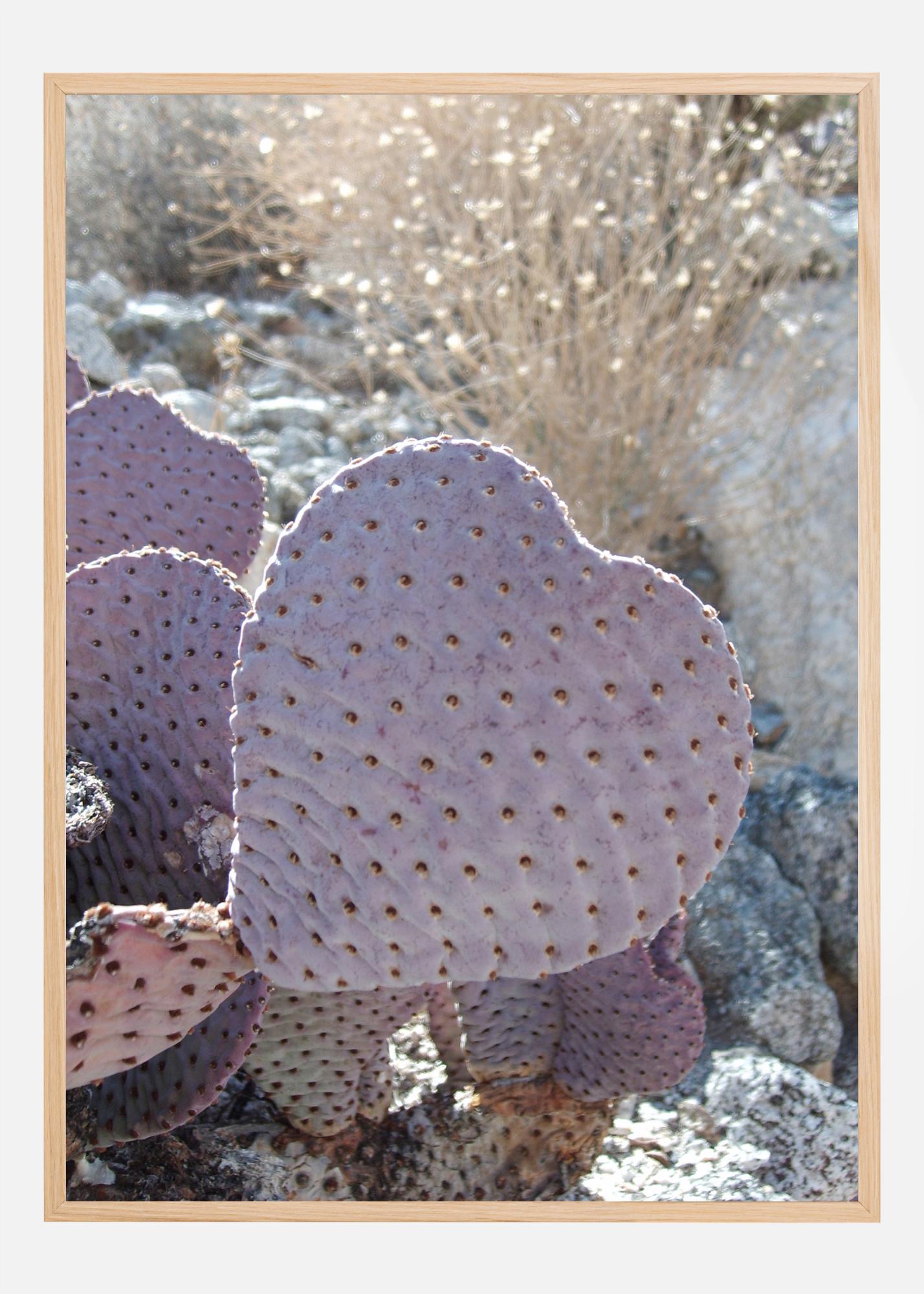 En magisk plakat av en hjerteformet kaktus. Tidlig morgenlys skinner bakfra og belyser de små blomstene på en busk som julelys. Den store bleke hjerteformede kaktusen blir midtpunktet, og fokuserer blikket på sitt interessante mønster av prikker, som gjør dette til et eterisk bilde.
