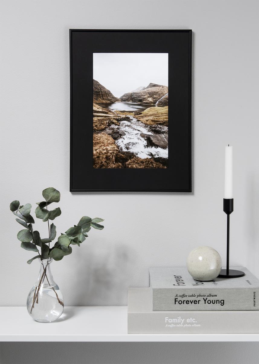 Gi dine bilder en elegant og luksuriøs touch når du rammer de inn med helsvarte passepartouter! Dette passepartout er av en veldig god kvalitet og den lages i vårt eget verksted. Pappmaterialet kommer fra markedsledende Canson som lager sine produkter med fokus på et holdbart skogbruk. Selvfølgelig er det PH-nøytralt som innebærer en høy holdbarhet på både bildet og passepartoutet.