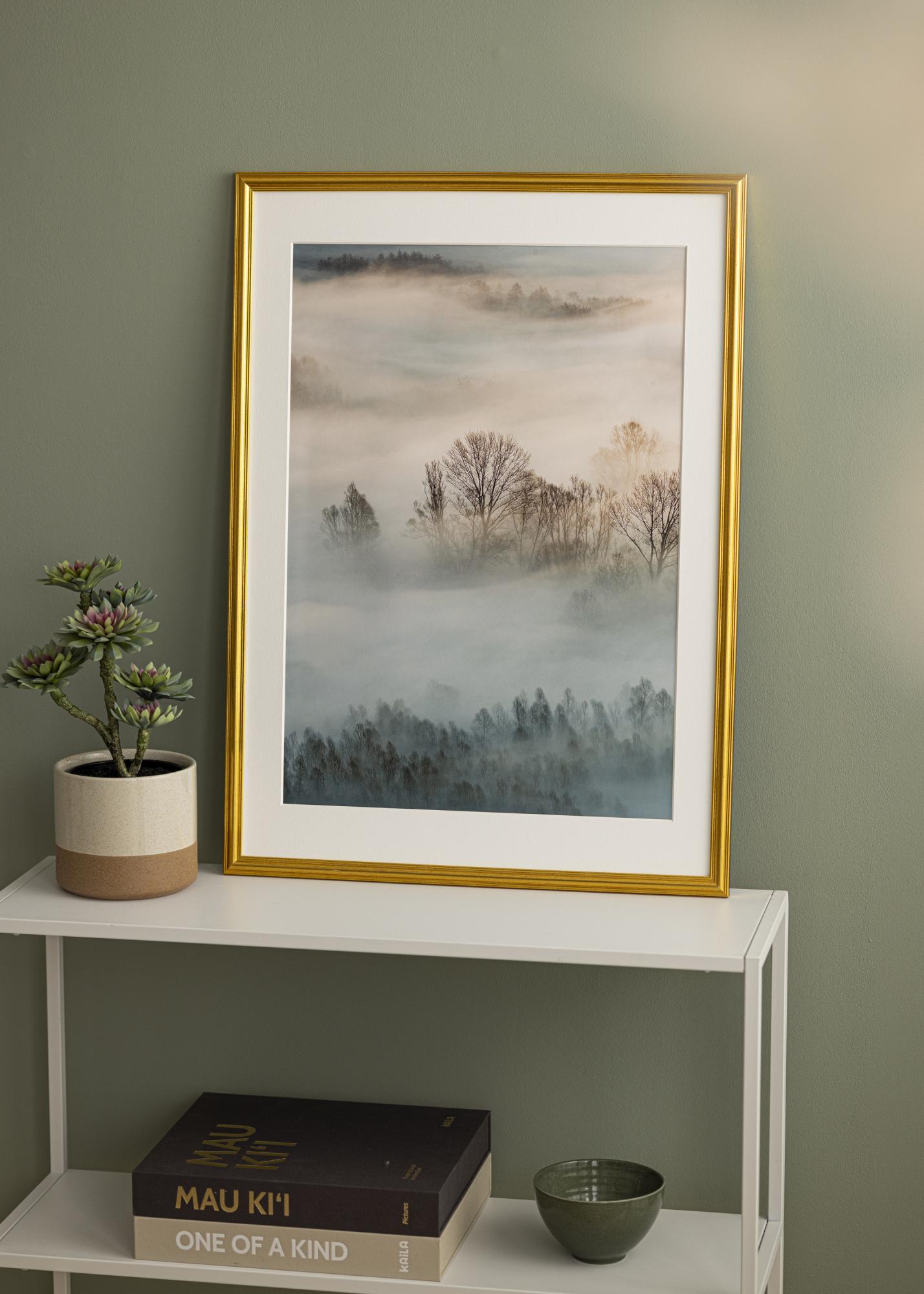 Start rammevelgeren »Pen, gullfarget ramme med et rødnyansert innslag i klassisk, tidløs design. Med sin nøytrale gullfarge er dette en ramme som passer til omtrent alle motiver og sammenhenger.