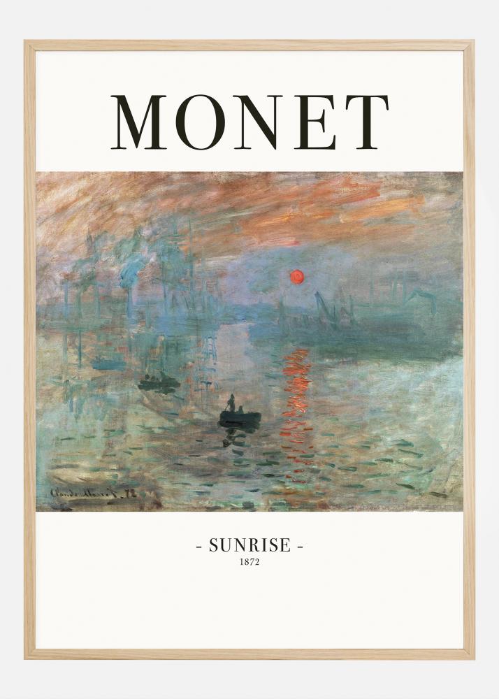 Denne plakaten gjenspeiler Claude Monets mesterverk 'Impression, Sunrise', maleriet som ga navn til impresjonismen. Fra 1872 tilbyr dette verket en tåkete utsikt over Le Havres havn ved daggry, der solen er en blodrød kule som kaster sitt reflekterende lys på det stille vannet. Monets myke men bestemte penselstrøk og den drømmelignende fargepaletten skaper en følelse av stillhet og forventning som hver ny dag medfører.