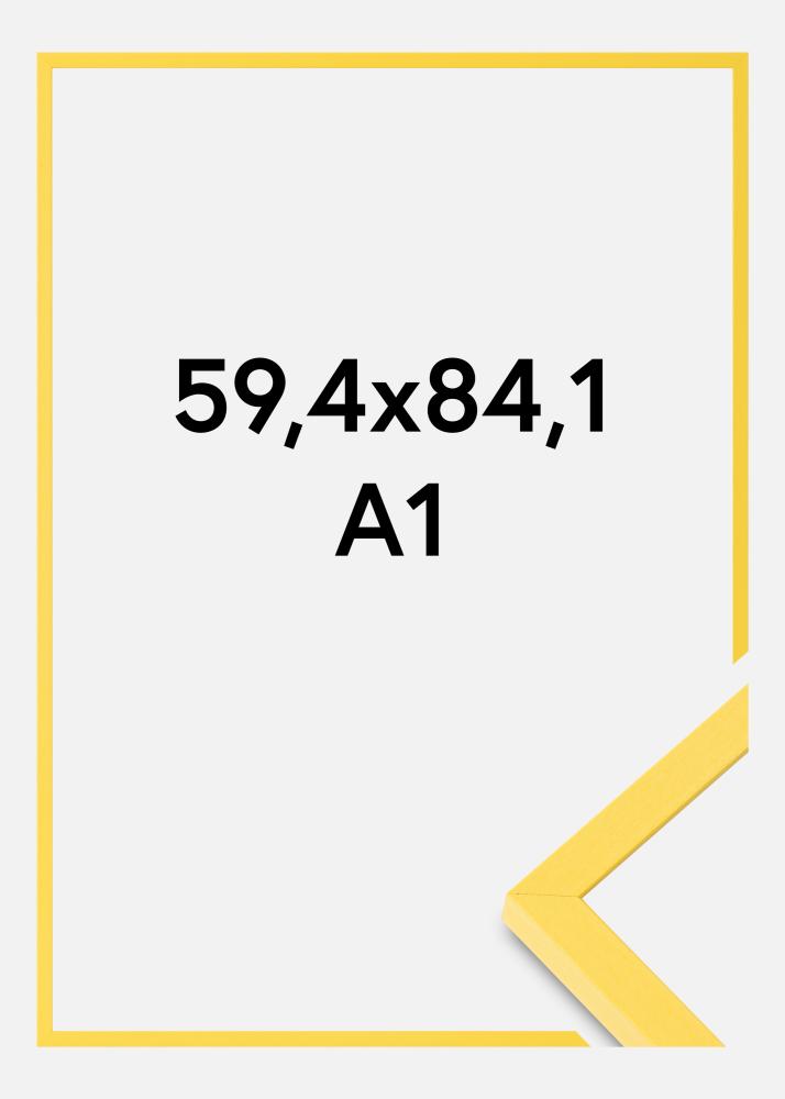 Gi bildene og kunstverkene dine en strålende ramme med vår iøynefallende gule fotoramme i størrelsen 59,4x84,1 cm (A1). Den slanke og elegante rammen, med en bredde på 13,5 mm, komplementerer kunstverket ditt uten å ta over. Denne bildekransen er ikke bare en stilfull detalj på veggen, den er også praktisk med sin allsidighet.