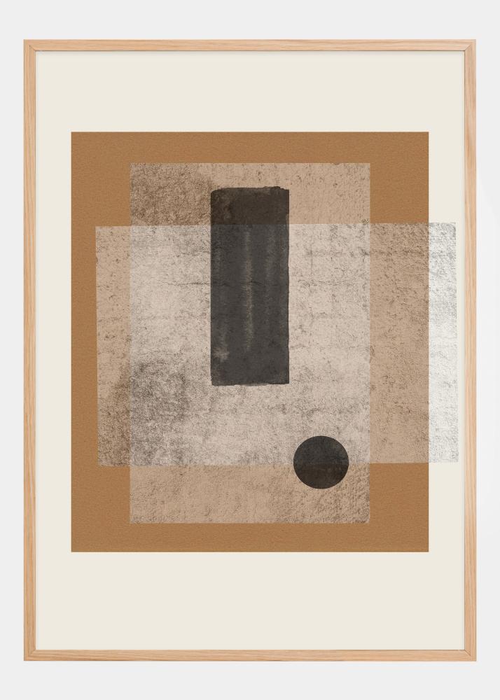 Denne posteren er en hyllest til den abstrakte kunstens mester, hvis verk lekte med form og tekstur for å skape balanse og dybde. De overlappende rektanglene i nyanser av brunt, svart og grått skaper en følelse av rom og dimensjon, mens den ensomme sirkelen tilfører en subtil, men kraftfull, dynamikk til komposisjonen.