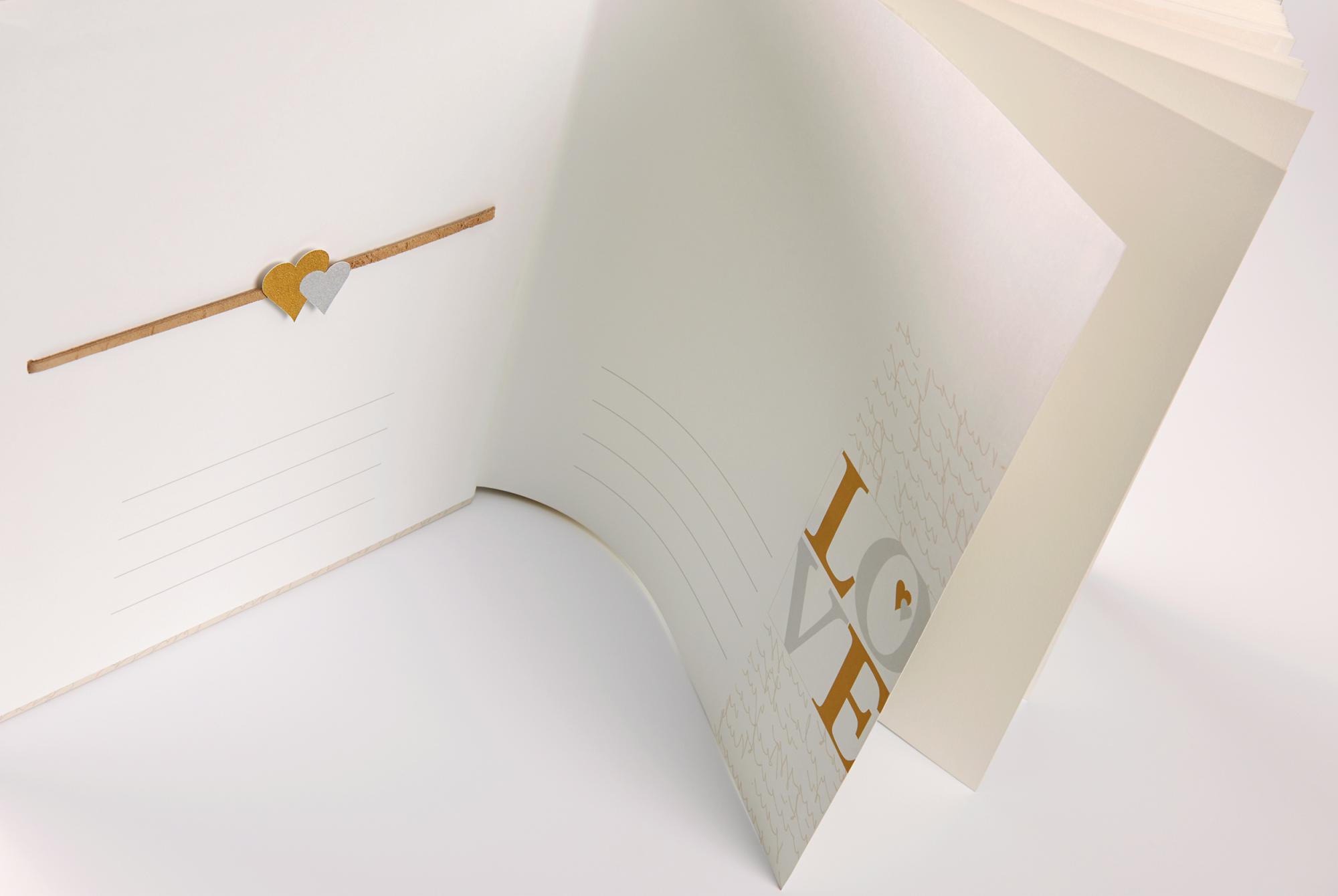 Fotoalbum for dine bryllupsbilder hvor du kan ha ditt eget bilde foran på permen. Innsidene er vakkert dekorerte med god plass for egne tekster.