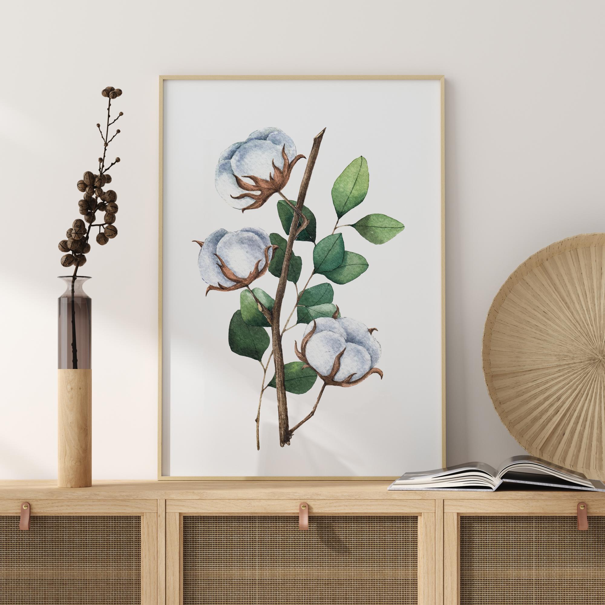 En illustrativ plakat med én enkelt bomullsblomst. Denne kunstneriske botaniske illustrasjonsstilen fremhever omhyggelig de store bomullsblomstene mot en ren hvit bakgrunn. Ta med denne plakaten hjem for den perfekte spirende botanikeren som en flott statement i ethvert hjem.