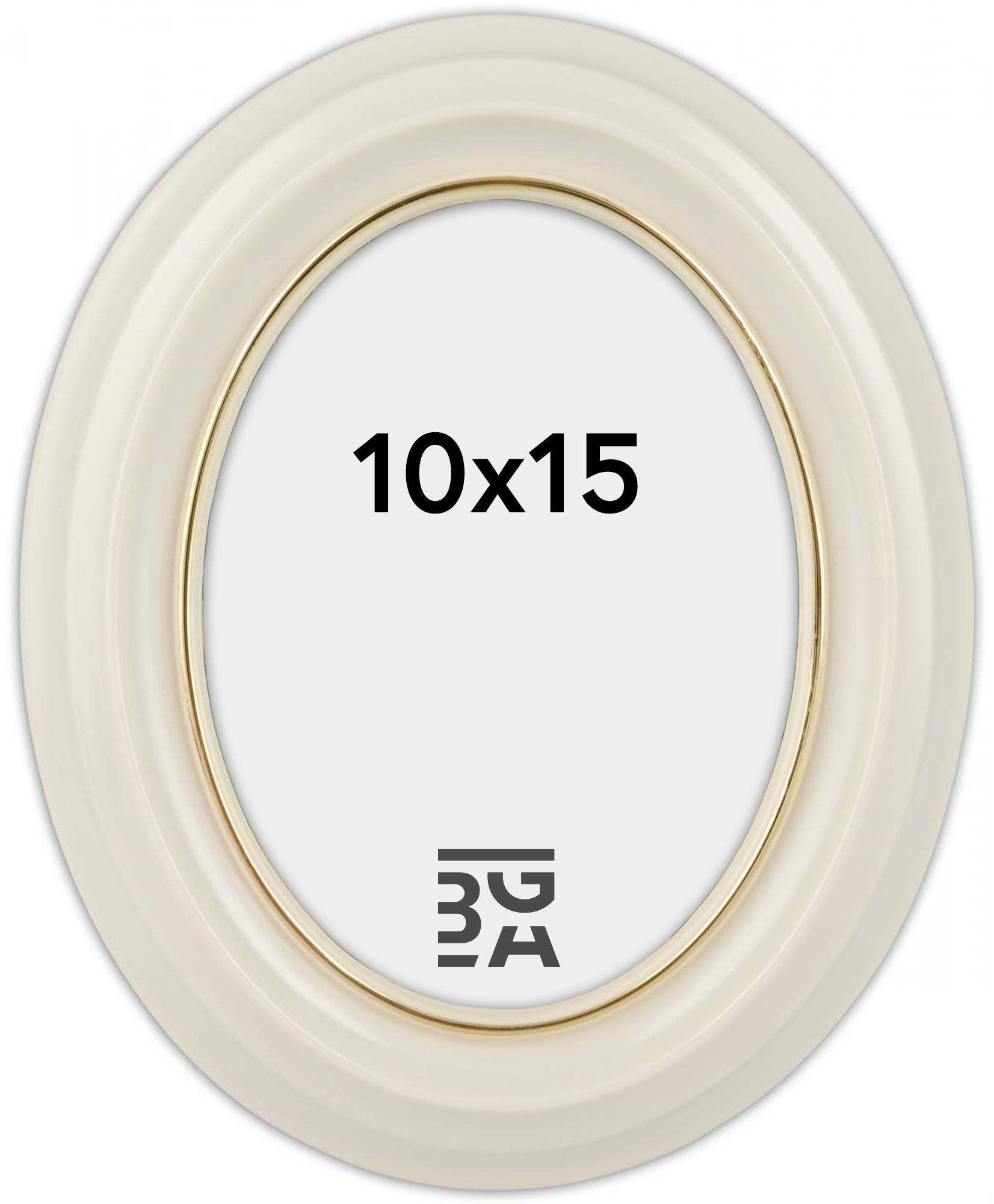 Start rammevelgeren »Eiri Mozart er en fin, hvit oval ramme produsert i Finland, noe som betyr at den har høy kvalitet. Foruten en tynn gullkant nærmest motivet er rammen helt hvit.