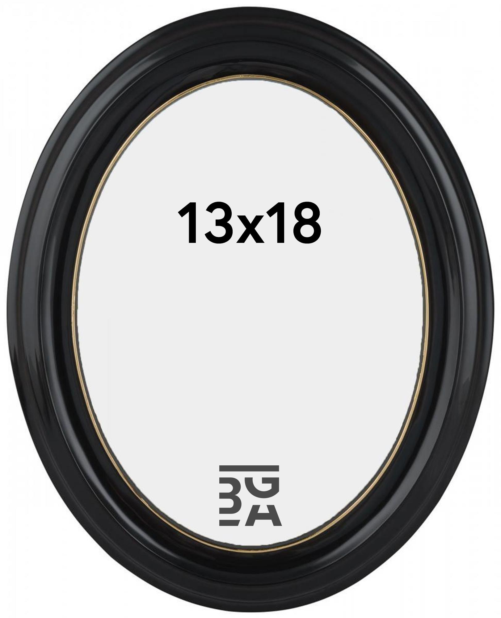 Eiri Mozart er en fin, svart oval ramme produsert i Finland, noe som betyr at den har høy kvalitet. Foruten en tynn gullkant nærmest motivet er rammen helt svart.