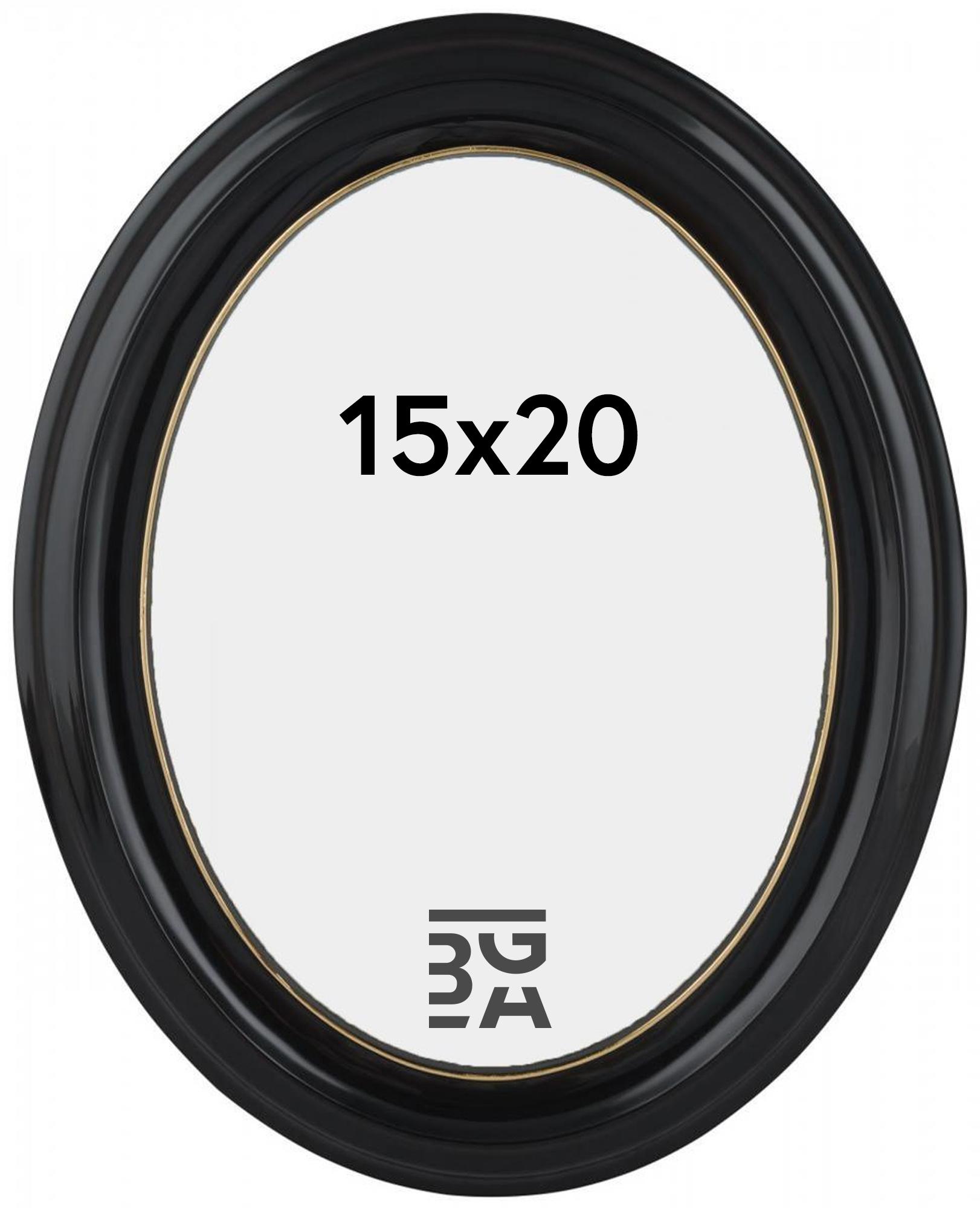 Start rammevelgeren »Eiri Mozart er en fin, svart oval ramme produsert i Finland, noe som betyr at den har høy kvalitet. Foruten en tynn gullkant nærmest motivet er rammen helt svart.