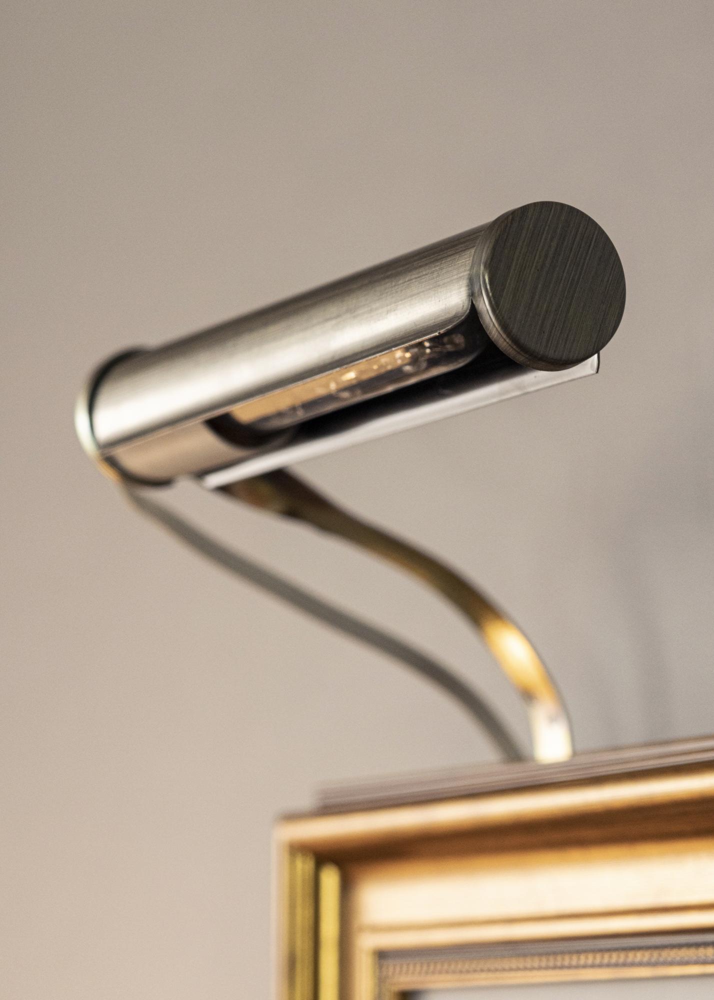 Til hvilke rammer passer belysningen? Vanligvis fester du maleribelysningen på baksiden av rammen, men ulempen med dette er at det krever en treramme (visse komposittrammer går også bra) som har en bred profil for at det skal være mulig å skru inn skruer i rammen. Med vårt veggfeste så slipper du å tenke på det, men fester bare belysningen direkte på veggen bak rammen.
