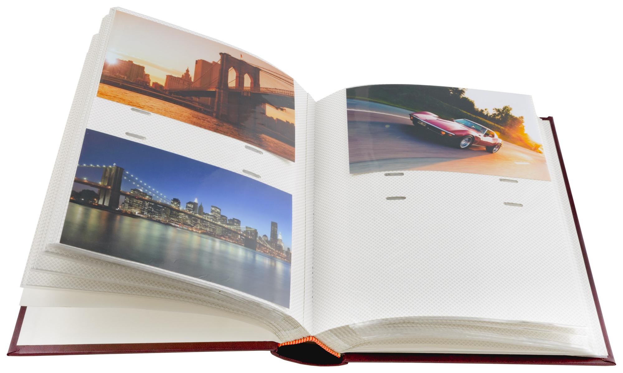 Exclusive Line Super Vinrød er et innbundet fotoalbum med ekstra kraftige permer, som gir en følelse av høy kvalitet. Albumet har fotolommer til 200 bilder i størrelsen 10x15 cm, og negativlomme. De syrefrie arkene er hvite, og har skrivefelt ved hvert bilde.