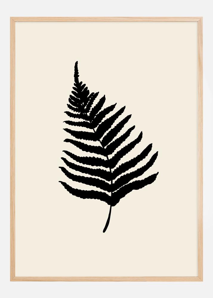 Denne minimalistiske og stilrene plakaten viser en silhuett av et bregneblad mot en lys bakgrunn, noe som skaper en sterk grafisk effekt. Det enkle, men likevel uttrykksfulle motivet i svart kontrasterer vakkert mot den kremfargede bakgrunnen og gir en organisk følelse til bildet. Denne printen er en hyllest til naturens enkle skjønnhet og dens evige sjarm.