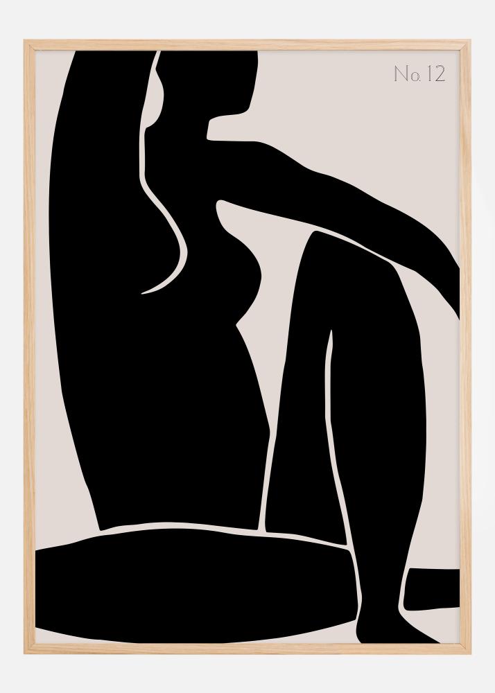 Kontrasten mellom den svarte figuren og den lyse bakgrunnen er ikke bare dristig, den illustrerer også møtet mellom lys og skygge, form og tomrom, noe som gir en sterk grafisk effekt. 'No. 12' er en plakat som er like mye en moderne kunstopplevelse som en interiørdetalj, og er perfekt for den som søker en samtidig estetikk med et hint av det dramatiske. Den er ideell for minimalistiske eller monokrome interiørstiler, hvor den kan stå som en sterk solitær aksent eller kombineres med andre lignende verk for å skape en imponerende bildevegg.