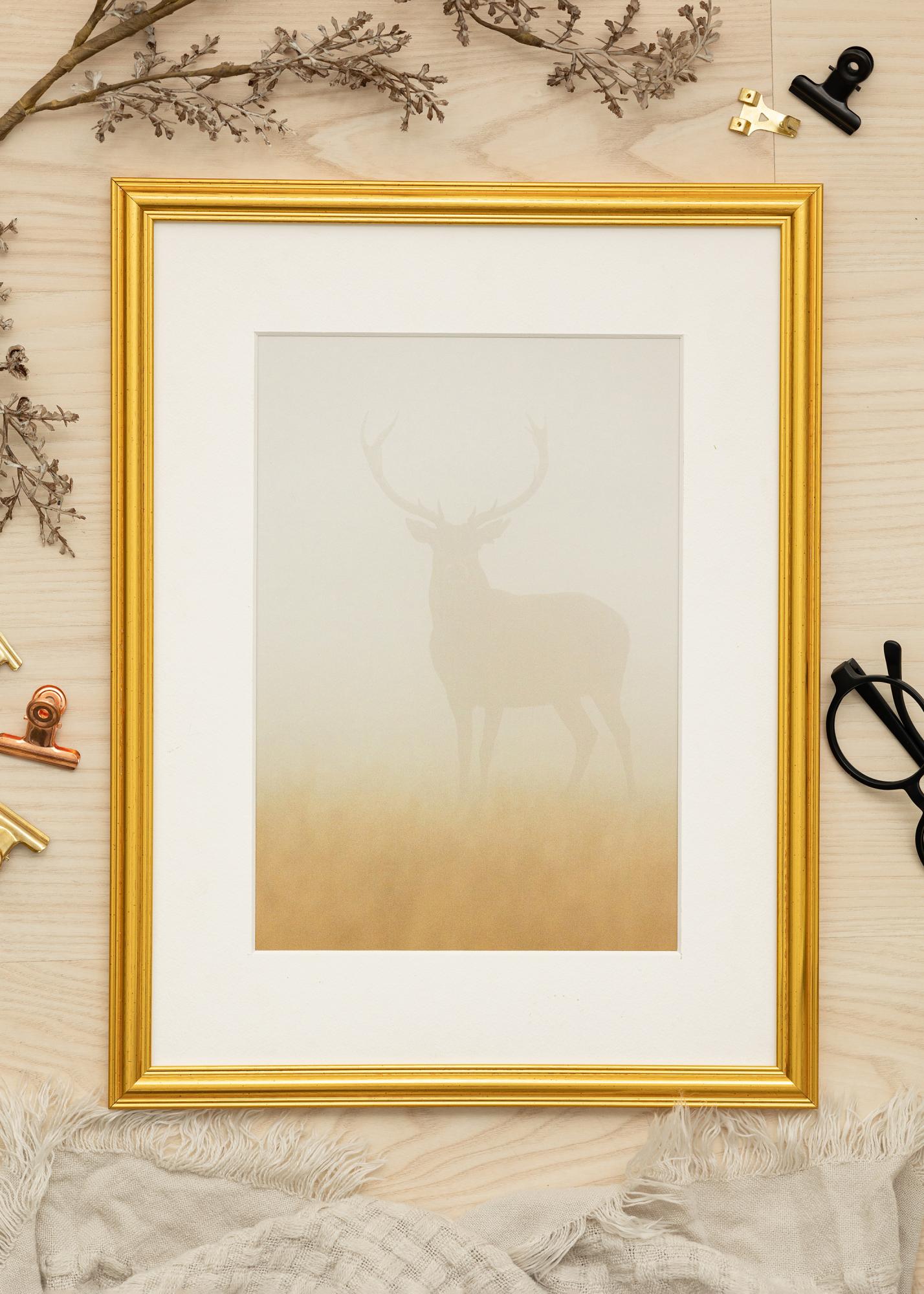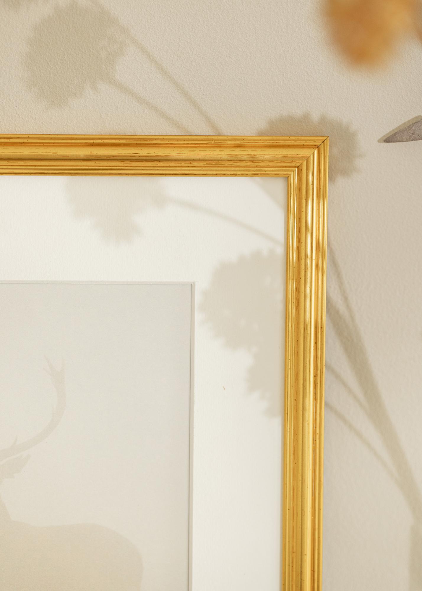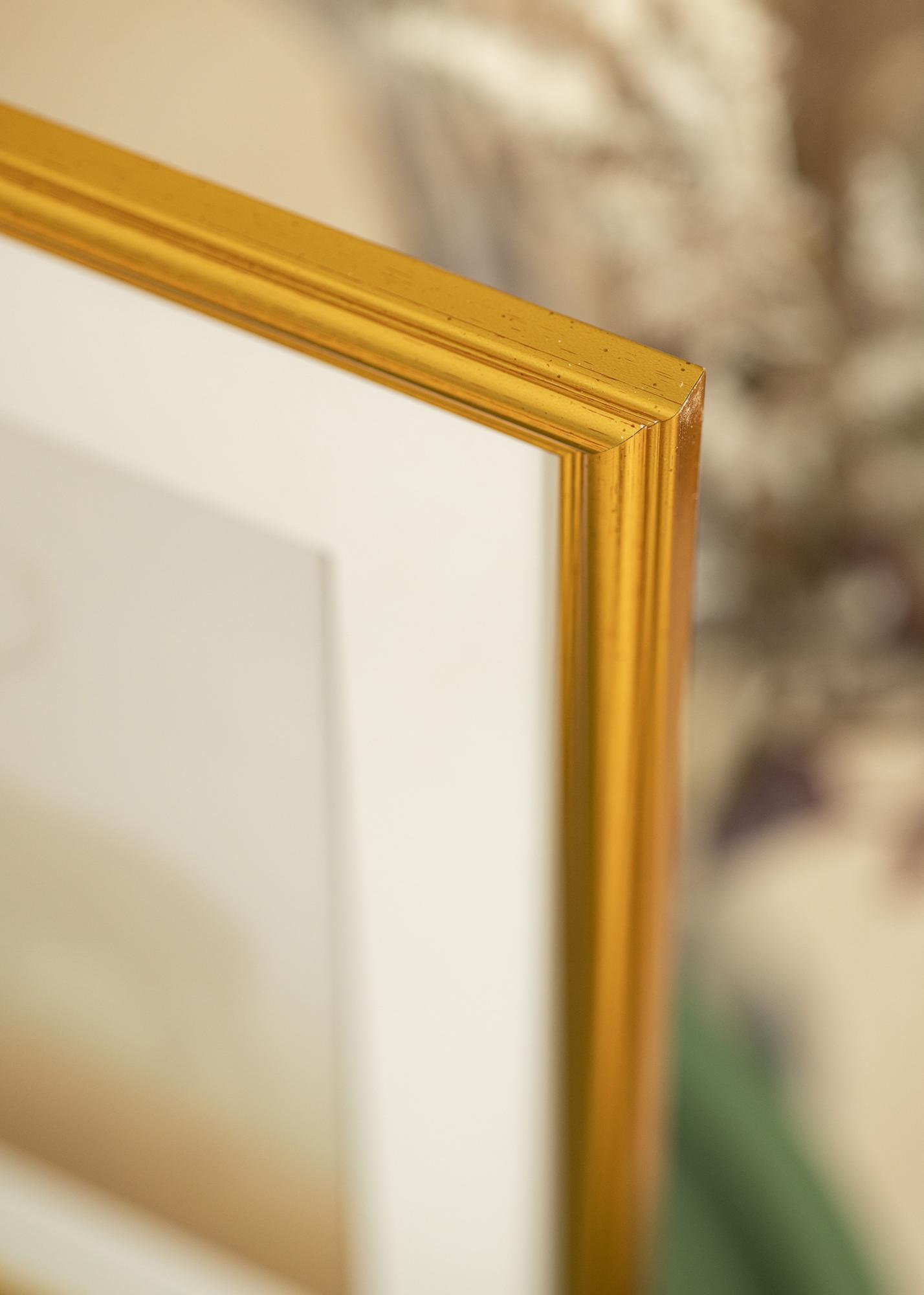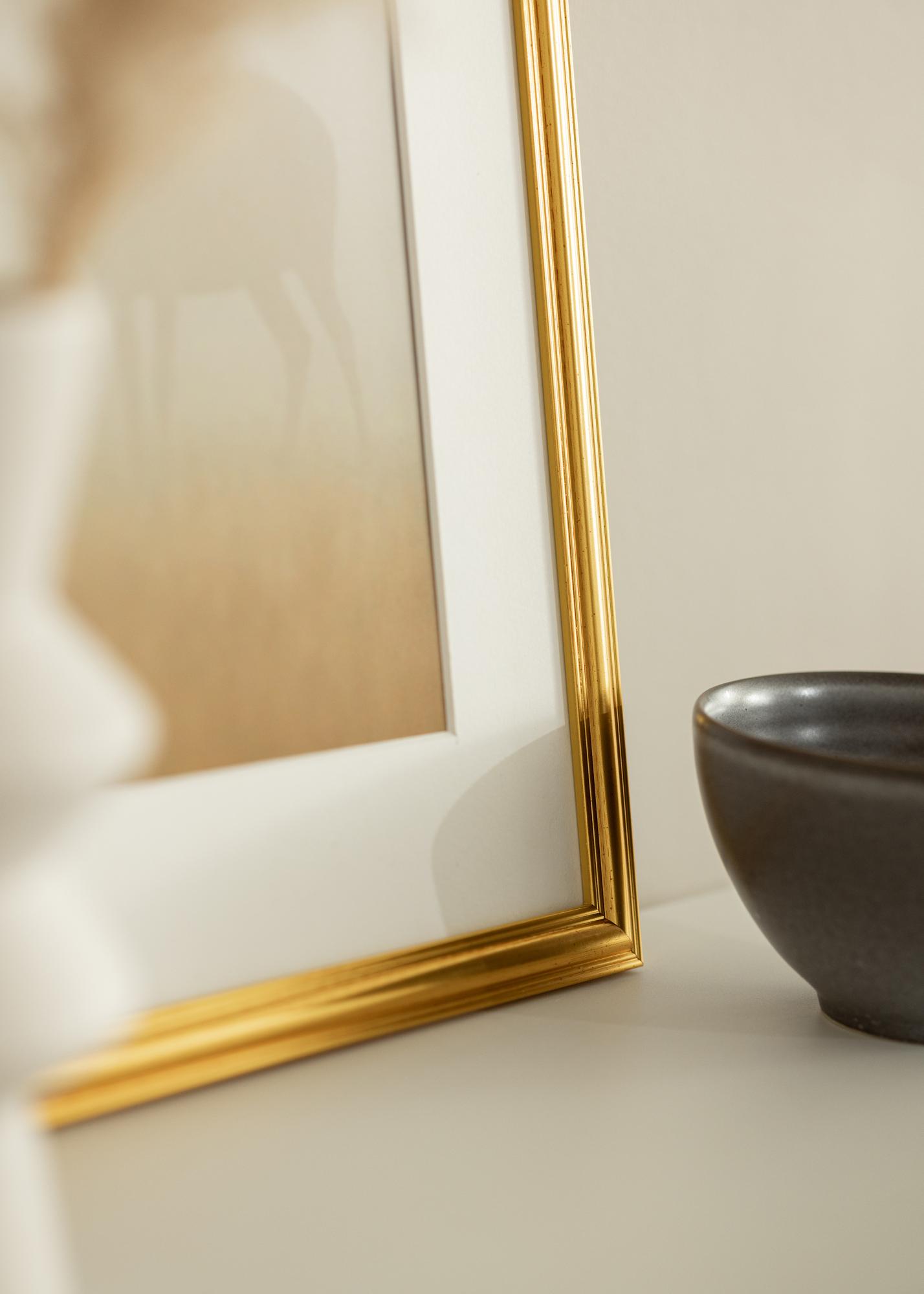 Frigg passer for deg som ser etter en bred helt gullfarget ramme. Med sin tradisjonelle design passer Frigg Gull i de fleste rom og miljøer.