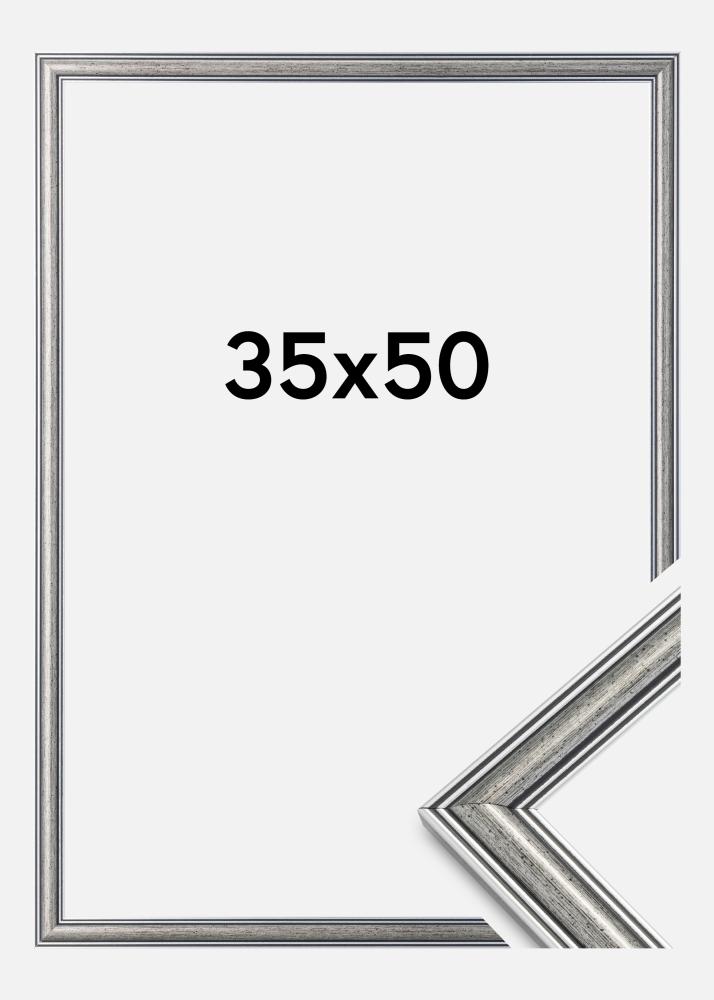 Frigg er en sølvramme med svarte linjer og svartspettede innslag. Passer utmerket når du ser etter en bred og tradisjonell sølvramme som passer til mange typer bilder og miljøer.
