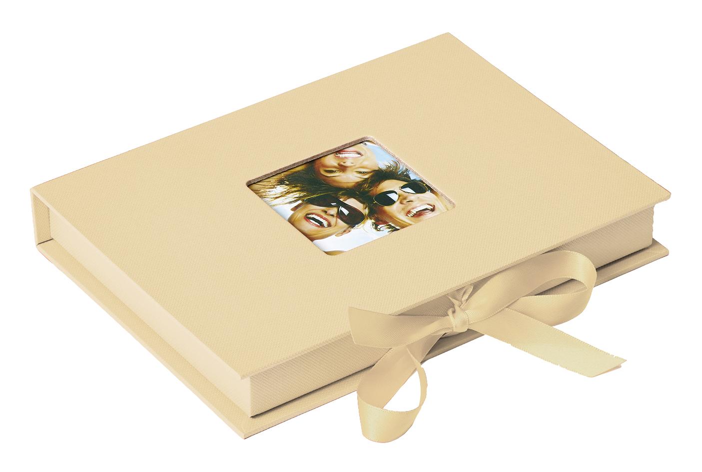 Stilig fotoboks med et moderne design i en lekker creme farge, som rommer 70 bilder i størrelser opptil 13x18 cm. På boksens overside er det plass til ditt eget bilde (6x6 cm) slik at du enkelt kan gjøre din fotoboks mer personlig.
