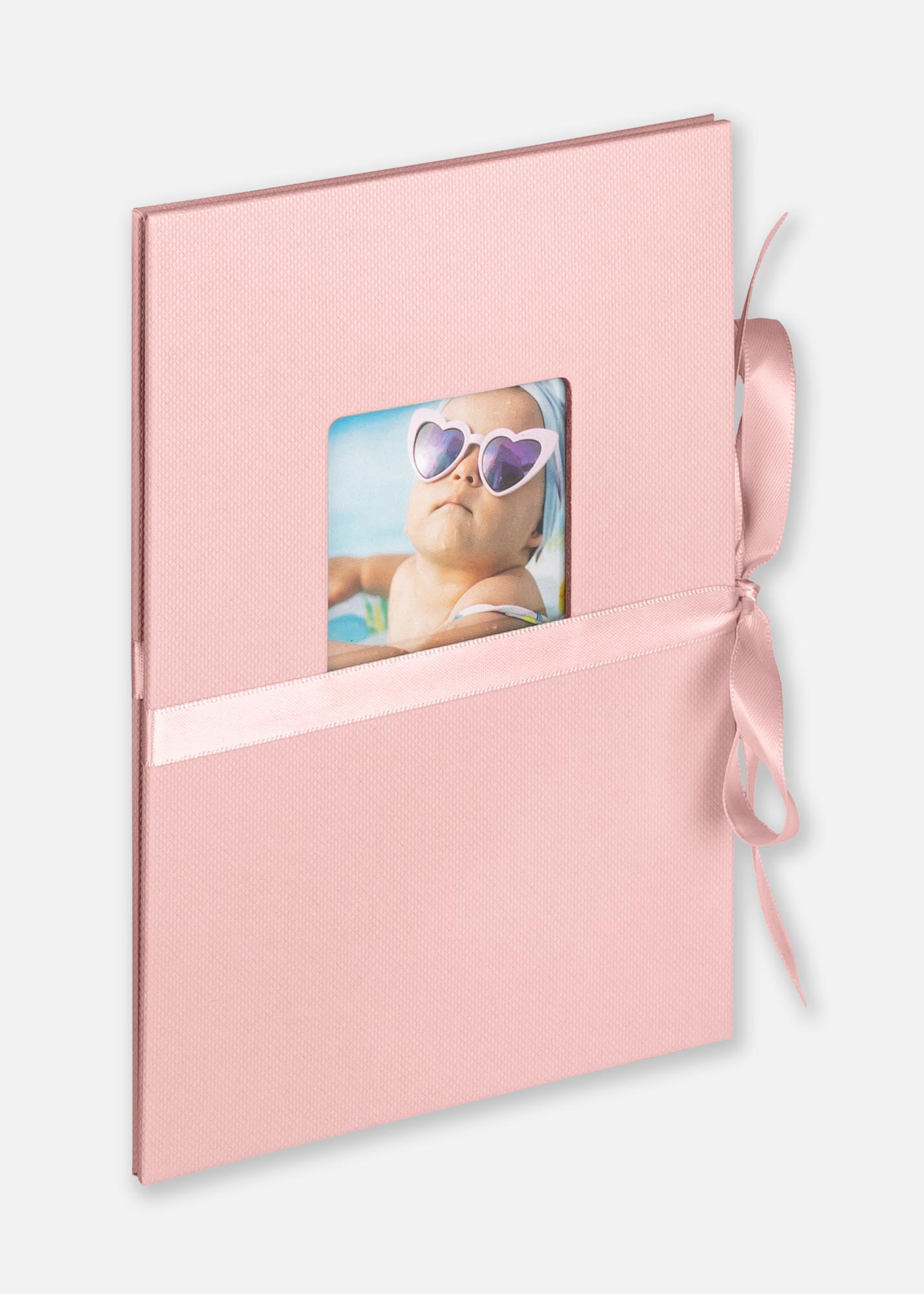 Gøy Leporello Babyalbum i rosa er et sjarmerende fotoalbum utformet for å bevare dine mest verdifulle minner. Dette trekkspillformede albumet rommer 12 bilder i størrelsen 10x15 cm, noe som gjør det enkelt å bla gjennom og vise frem dine favorittøyeblikk. Albumet har svarte, syrefrie sider som sikrer at fotografiene dine bevares i best mulig stand over tid. Omslaget er laget av høykvalitetspapir med en strukturert overflate og prydes av en dekorativ sløyfe, noe som gir en elegant og leken touch. På forsiden finnes en kvadratisk bildeforsterker på 5x5 cm hvor du kan plassere et personlig foto for å gjøre albumet enda mer unikt. Med målene 12x16,7x1 cm er dette kompakte albumet både praktisk og estetisk tiltalende, perfekt for å samle og vise frem dine mest elskede bilder.