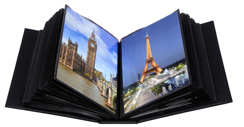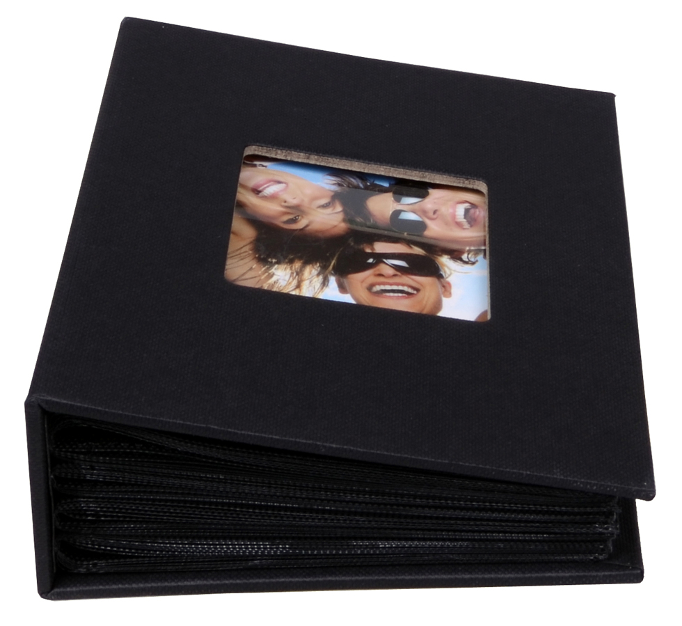 Personlig fotoalbum fra Walther med plass til 100 bilder i størrelse 10x15 cm i stående format. Bildene settes inn i praktiske bildelommer. Bildelomme foran på permen med plass til ditt eget personlige bilde (6x6 cm).