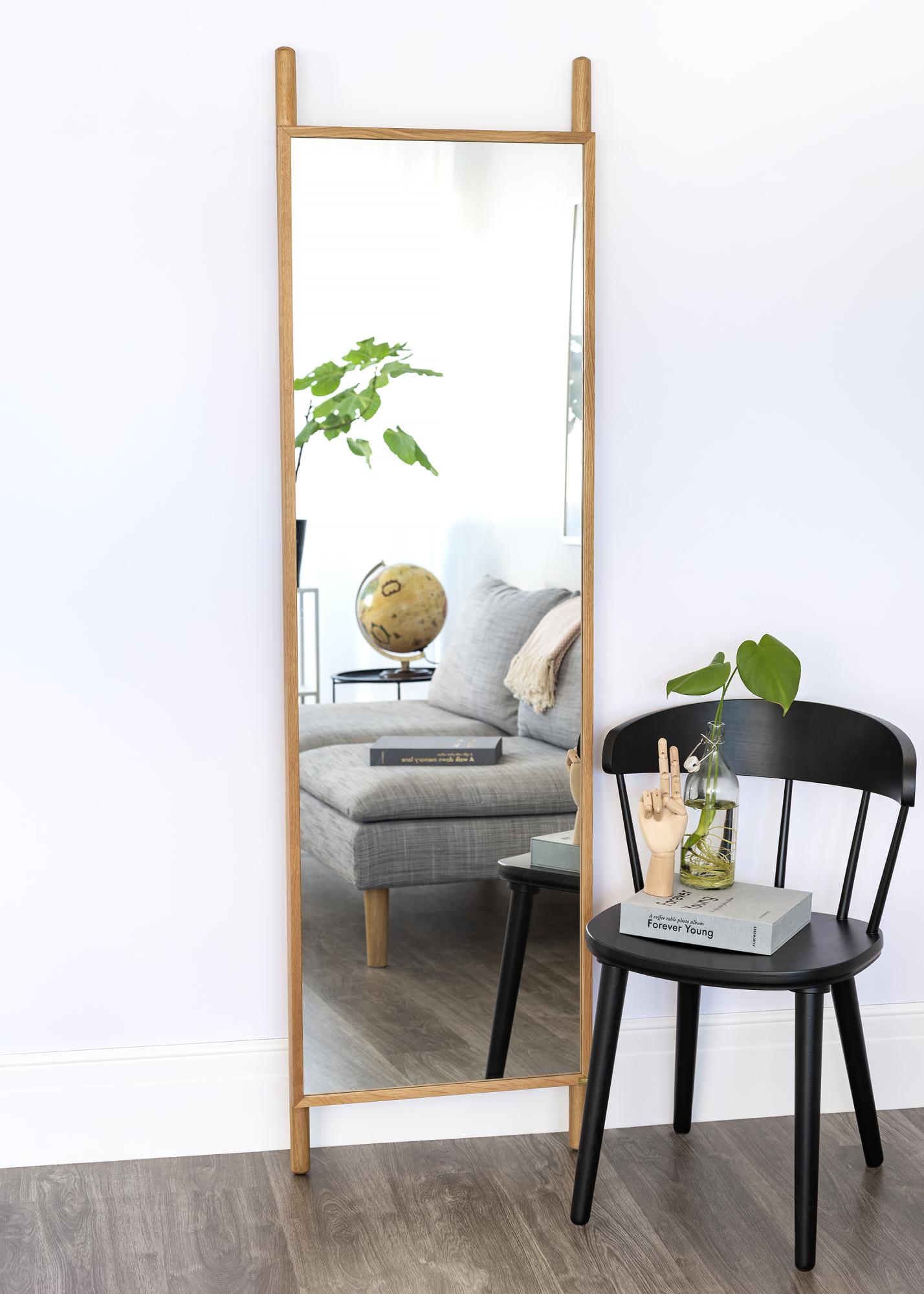 Enkel, minimalistisk – og så stilig. Dette gulvspeilet i eik passer både i et moderne og et mer klassisk hjem.