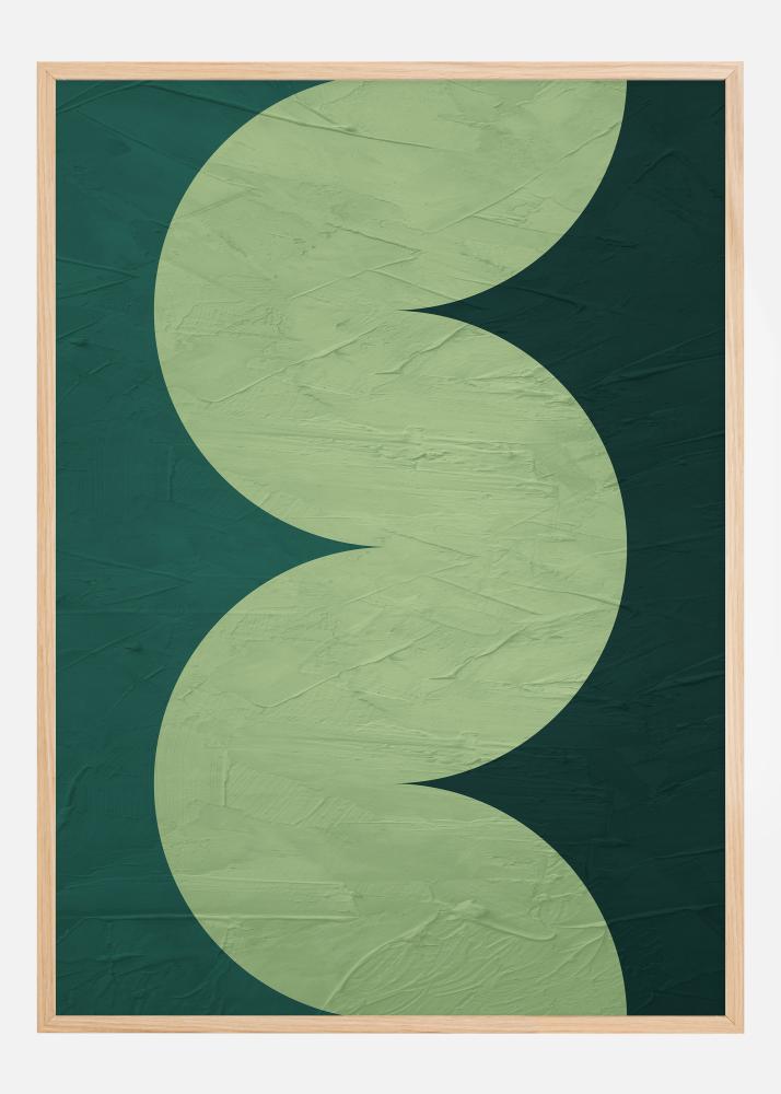 Denne abstrakte og kunstneriske posteren kjennetegnes av sitt dristige grafiske design med sveipende kurver som skaper en leken og dynamisk følelse. De to grønne nyansene, en lysere pastell og en dypere skogtone, komplementerer hverandre og gir en følelse av liv og vekstkraft. Dette kunstverket gir en moderne touch og en frisk atmosfære til ethvert rom og er en hyllest til de naturlige nyansene av grønt som vi finner i naturen.
