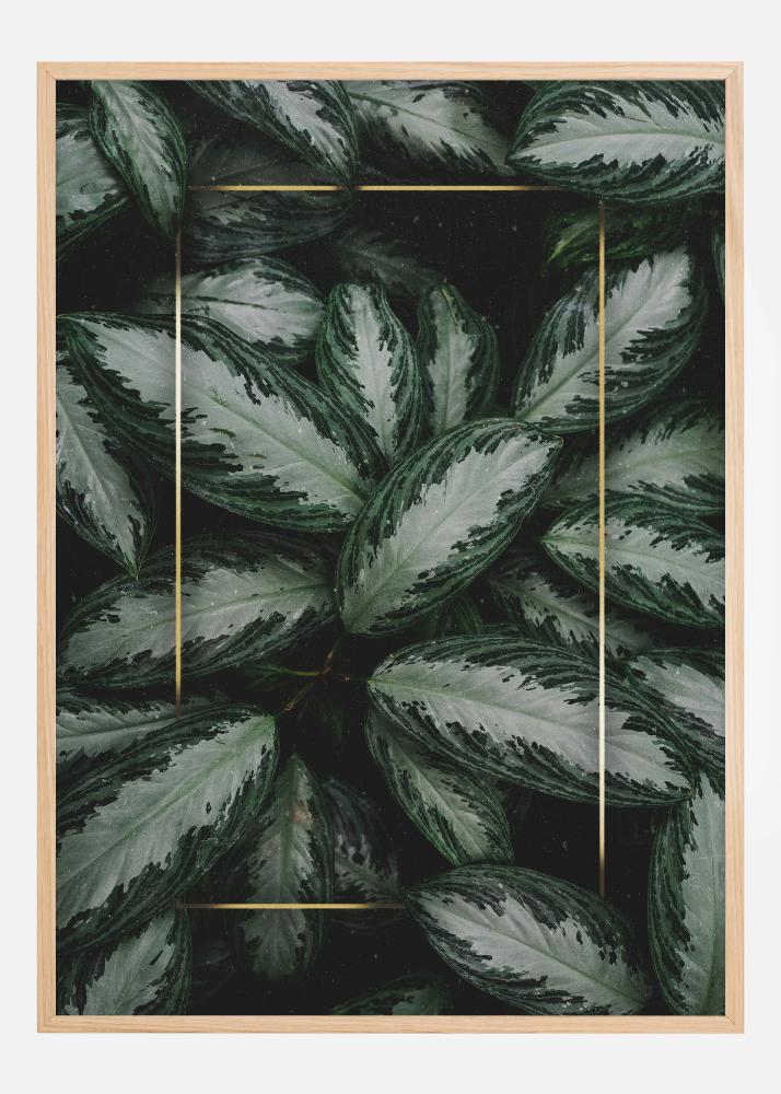 Med sin dristige og livlige grønne fargetoner, tilbyr denne posteren et forfriskende innslag av natur inn i ditt hjem eller kontor. Motivet avbilder en tett samling av blader, hvis detaljrike mønster i ulike nyanser av grønt mot en mørk bakgrunn fremhever deres naturlige skjønnhet. Hvert blads levende tekstur og kontrasterende mørke streker skaper en visuell dynamikk som både er beroligende og energigivende. Dette printet er en hyllest til naturens enkle men komplekse design, ideell for de som ønsker å innføre elementer av det naturlige og organiske i sin innredning.