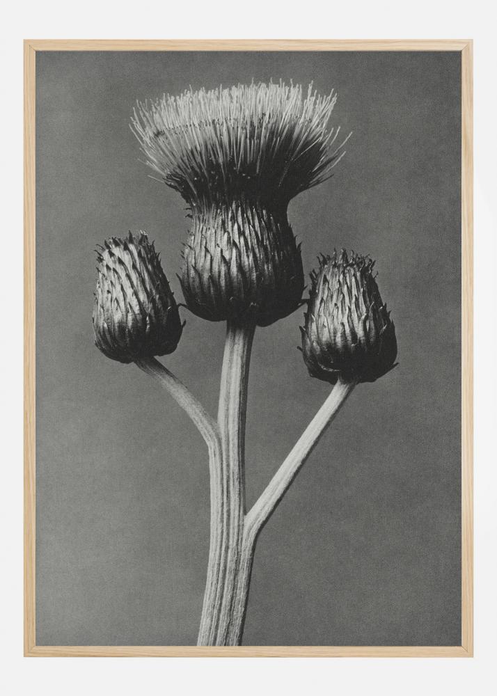 En kraftig plakat med en grå blomst kjent som artisjokk. Avbildet på en gråfarget bakgrunn skaper denne enkle, men fantastiske plakaten en følelse av ensomhet. Med det naturlige lyset som skinner forsiktig på blomsten, er dette en perfekt plakat for alle blomsterentusiaster.