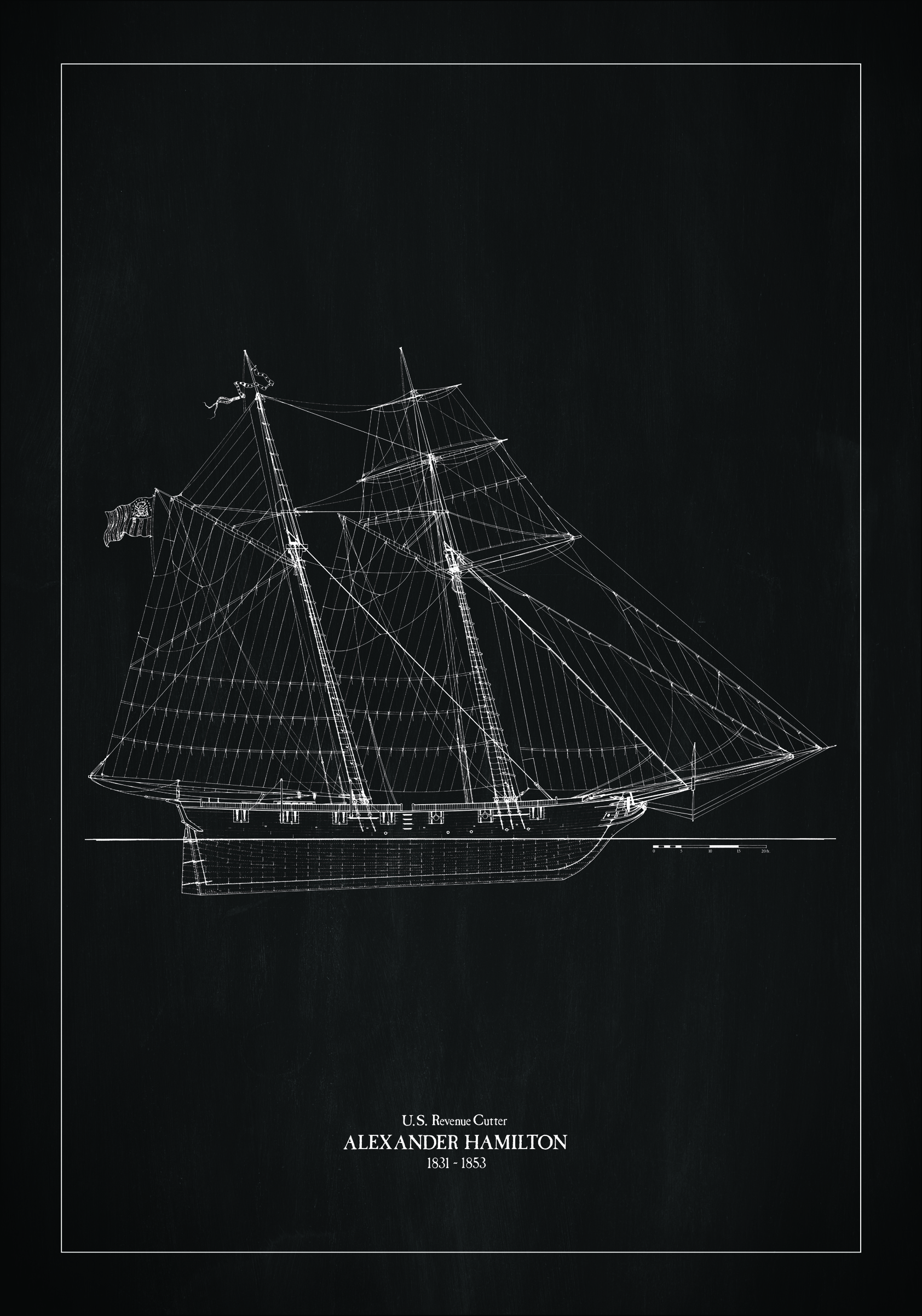 Krittavle - Skip - USRC Alexander Hamilton - Plakat trykkes i vårt eget printstudio på et 230 grams premiumpapir som er FSC-sertifisert og aldersbestandig. Vi har valgt den kraftige tykkelsen og matte overflaten siden det har en kvalitetsfølelse og gir et fint trykk uten refleksjoner.
