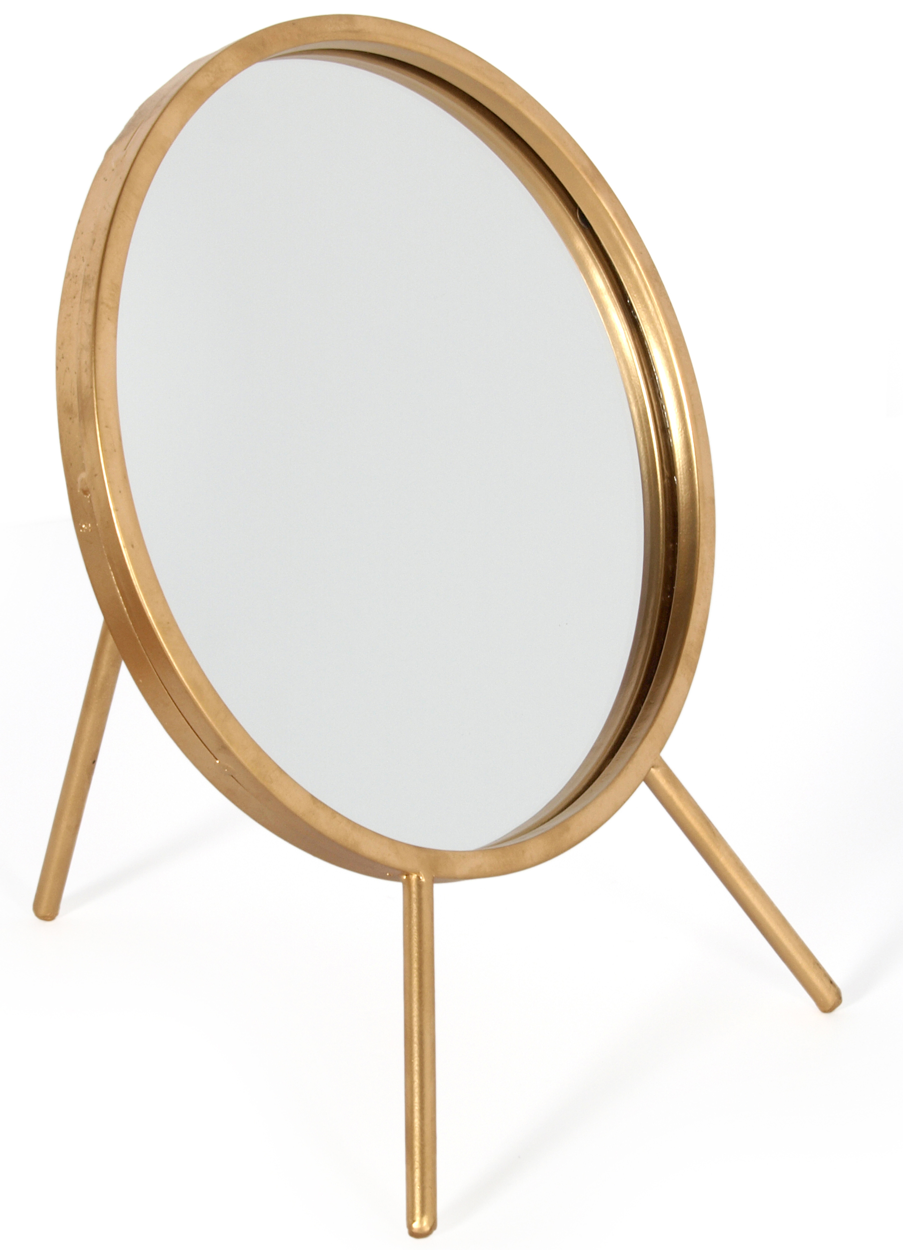 Dette tøffe bordspeilet i dansk design måler 30 cm i diameter og har en messingfarget ramme. Står stødig og kommer til å utgjøre et vakkert innslag i hjemmet ditt.